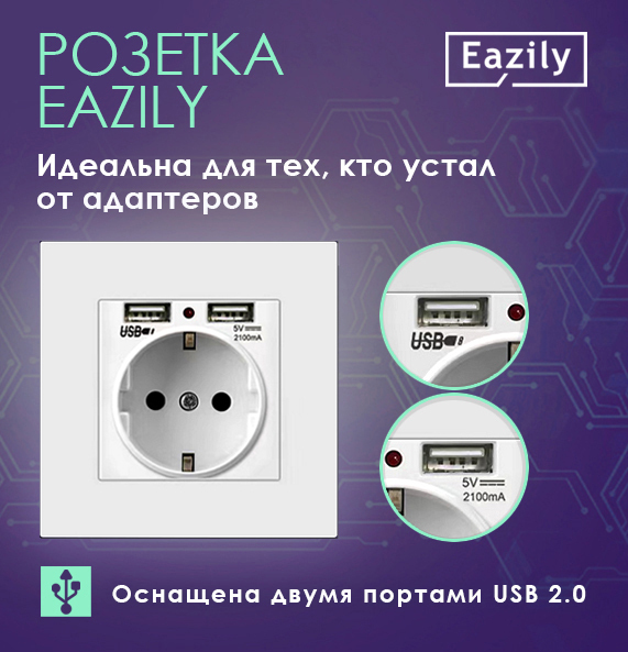 Многофункциональная розетка с встроенными USB-портами - отличное решение для современного человека. Все больше и больше приборов и гаджетов переходят на стандартный USB-разъем: телефоны, планшеты, светильники и т.д. Такая розетка пригодится и дома, и в оф