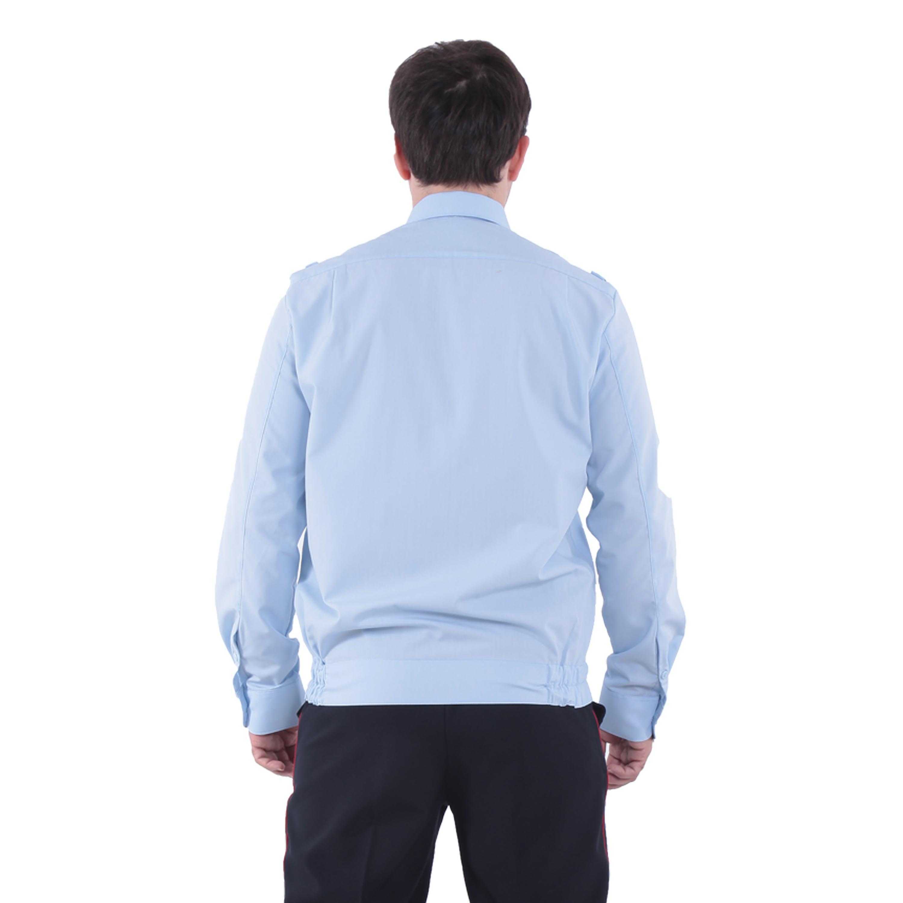 Ткань: Сорочечная, 35% вискоза - 65% полиэстерКоличество карманов: 22 нагрудных кармана на пуговицахОсобенности модели:центральная застежка на пуговицахпетли для погоновманжеты рукавов на пуговицахворотник стойка под галстукпояс на резинкедлинный рукав