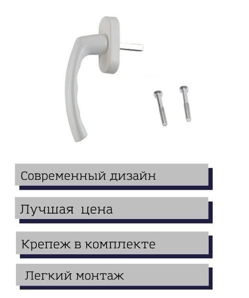Оконная ручка ELIT белого цвета, удобной формы, в комплекте идут винты для крепления. На внутренней поверхности ручки - мягкое рифление для удобства захвата пальцами. При подборе ручки к окну следует учитывать длину штифта, ориентируясь на длину штифта