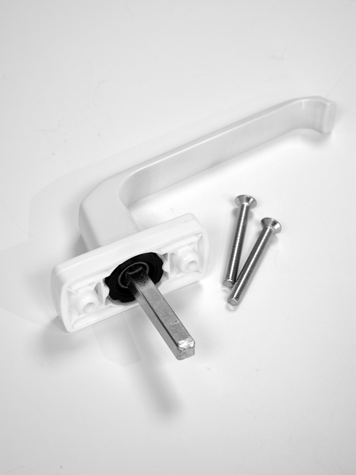 Ручка оконная металлическая белого цвета. Модель Hermo. Оконная ручка подходит для большинства ПВХ окон представленных на Российском рынке. Длина штифта 38 мм. Установка оконной ручки не вызывает сложностей: для этого достаточно иметь крестовую отвертку.