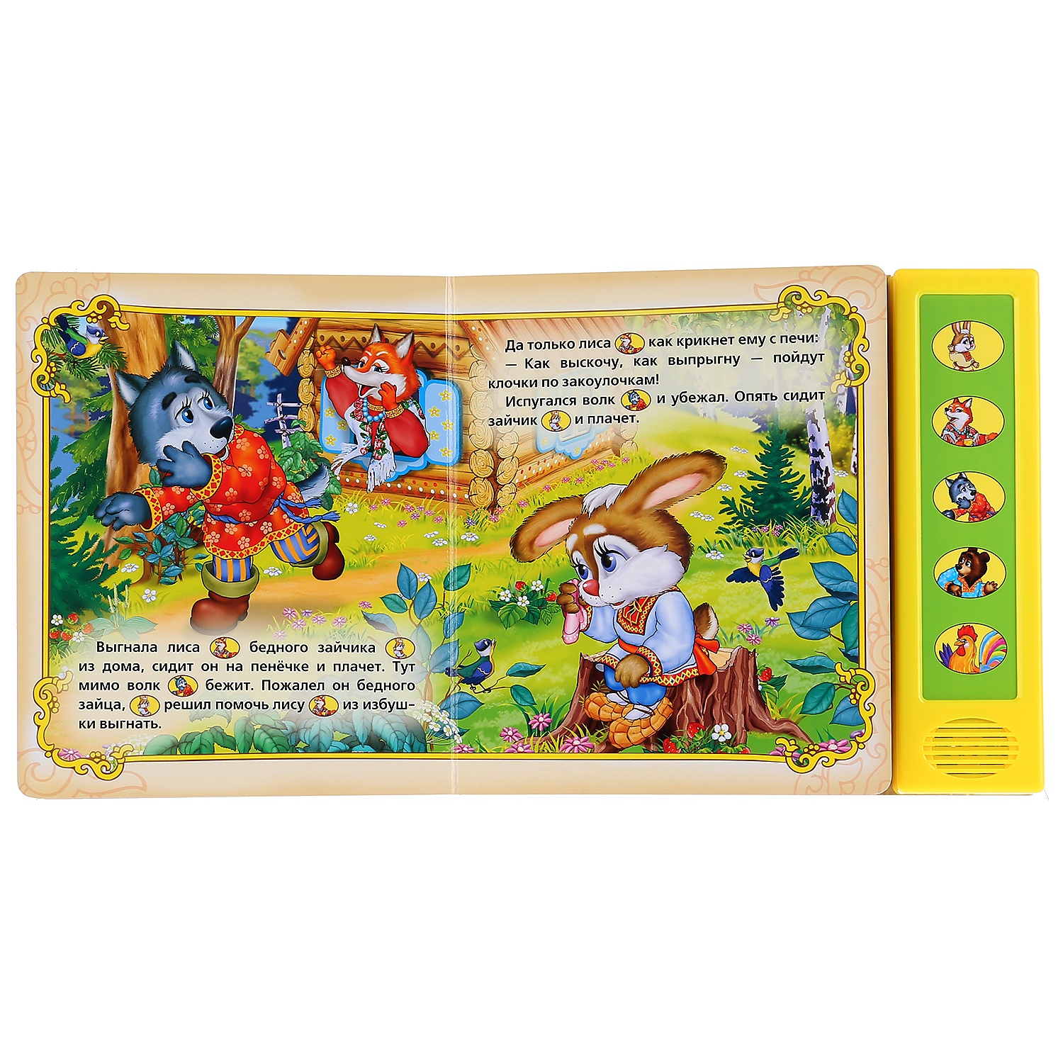 Замечательная интересная книга с 5 звуковыми кнопками "Заюшкина избушка" по мотивам одноименной русской народной сказке. В книге рассказана история про зайца и лису. Малыш с удовольствием будет ее слушать или читать. При этом рассматривать яркие, красочны
