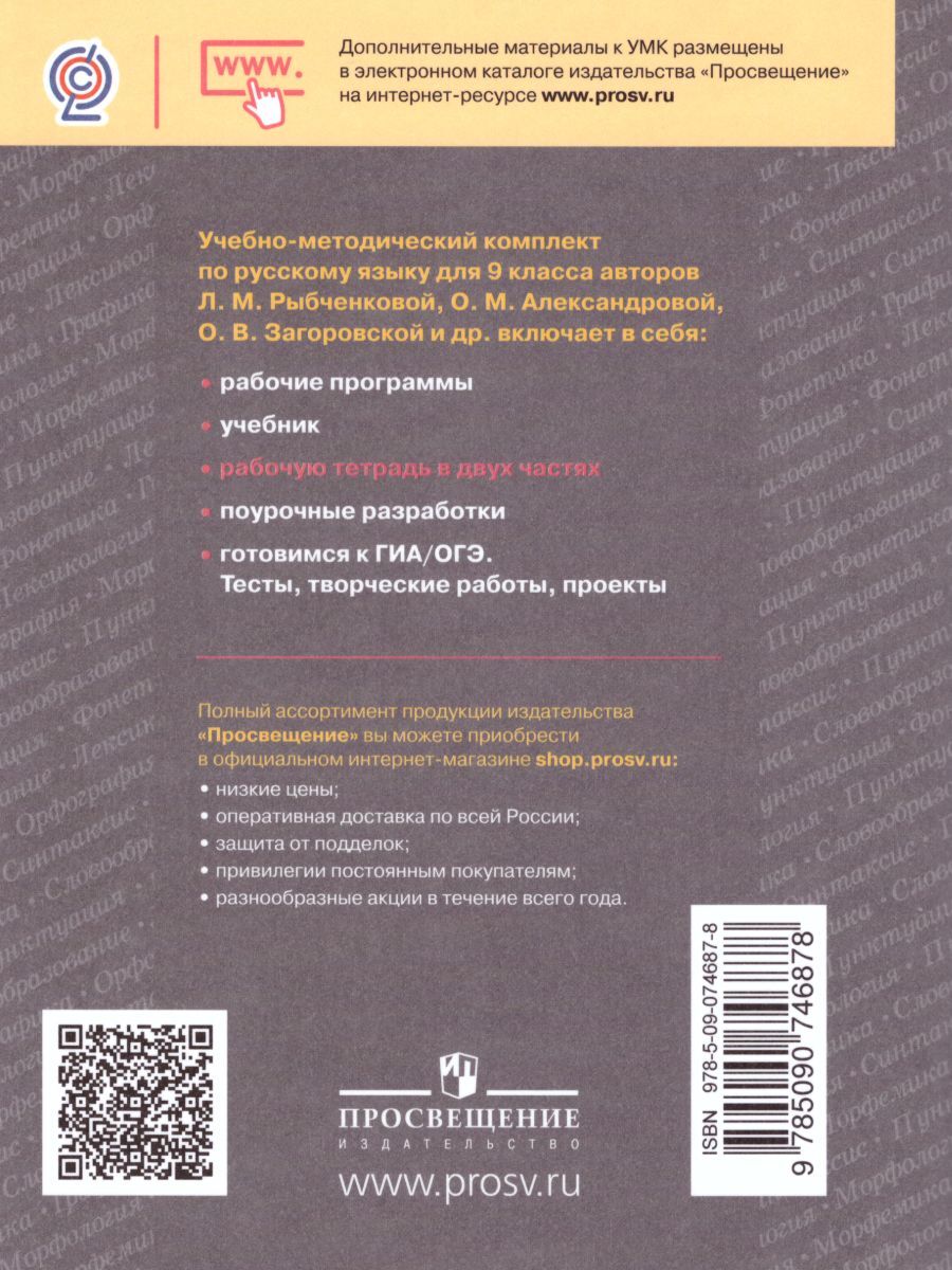 Рабочая тетрадь по русскому языку в 2 частях адресована учащимся и является составной часть УМК по русскому языку для 9 класса авторов Л.М. Рыбченковой, Т.Н. Роговик. Все упражнения и задания рабочей тетради структурированы в соответствии с разделами и па