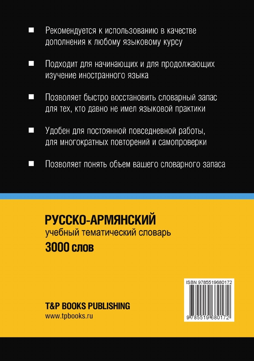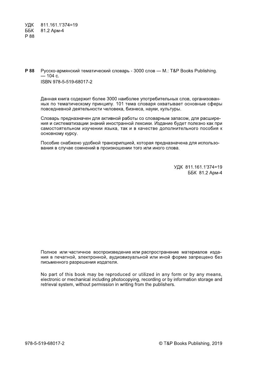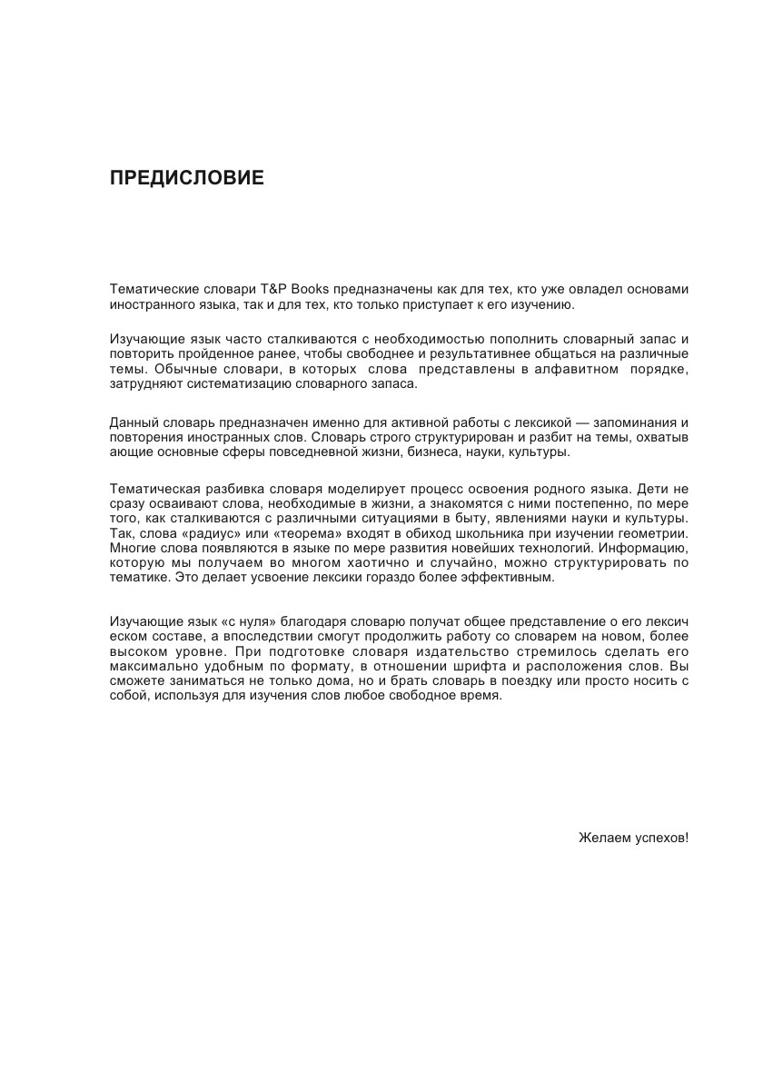 Данная книга содержит более 3000 наиболее употребительных слов, организованных по тематическому принципу. 101 тема словаря охватывает основные сферы повседневной деятельности человека, бизнеса, науки, культуры.Словарь предназначен для активной работы со с