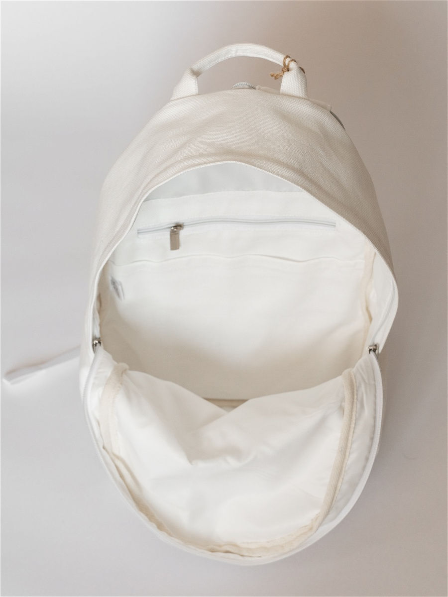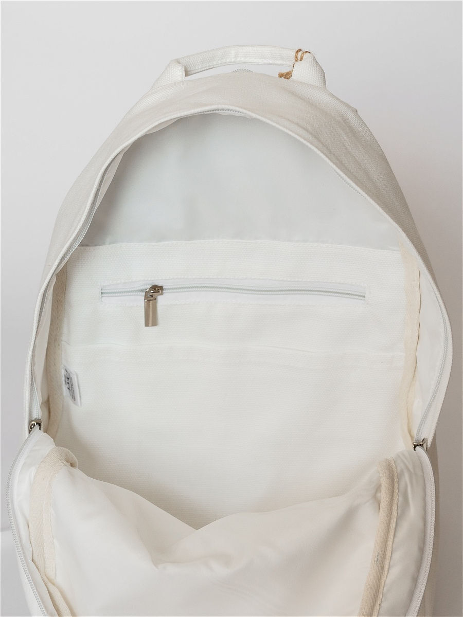 Городской рюкзак из льна и хлопка. Женский рюкзак. Мужской рюкзак. Сумка рюкзак. Белого цвета. Основное отделение закрывается на молнию с двумя бегунками. Ткань очень плотная, но на ощупь мягкая и приятная. Плетение ткани - рогожка. Ткань легко стирается