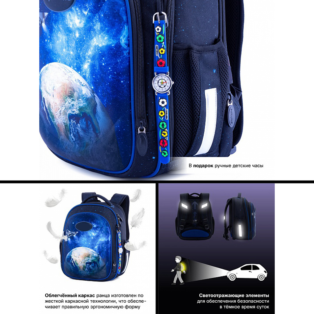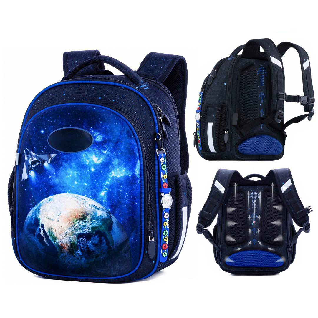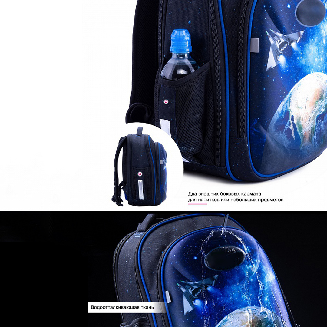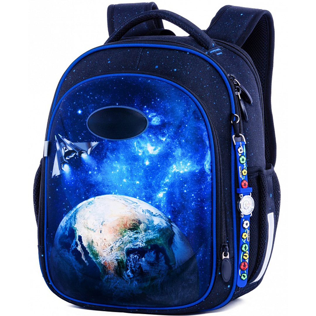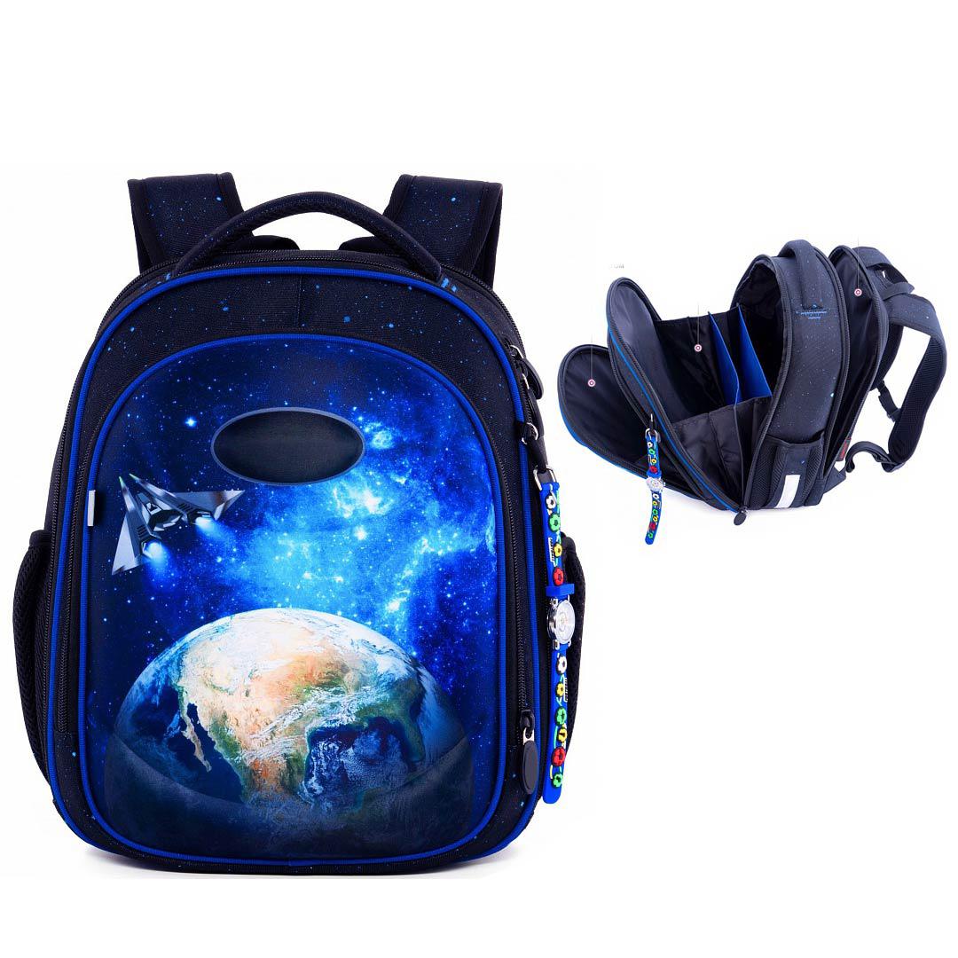 Ранец школьный для мальчика с рисунком планеты Земля для 1-6 классов изготовлен по жестко-каркасной технологии. Яркие цвета, необычные принты - это то, что выделит вашего ребенка и станет отличным дополнением к его гардеробу.Основное большое отделение, с