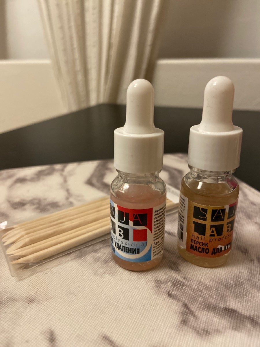 Способ примененияГель для удаления кутикулы: 1. Нанести гель на кутикулу и оставить на 1-2 минуты. 2. Маникюрной палочкой (входит в набор) аккуратно отодвинуть кутикулу и удалить ороговевший слой. 3. После применения вымыть руки. Масло для кутикулы «Персик»: Ежедневно - у