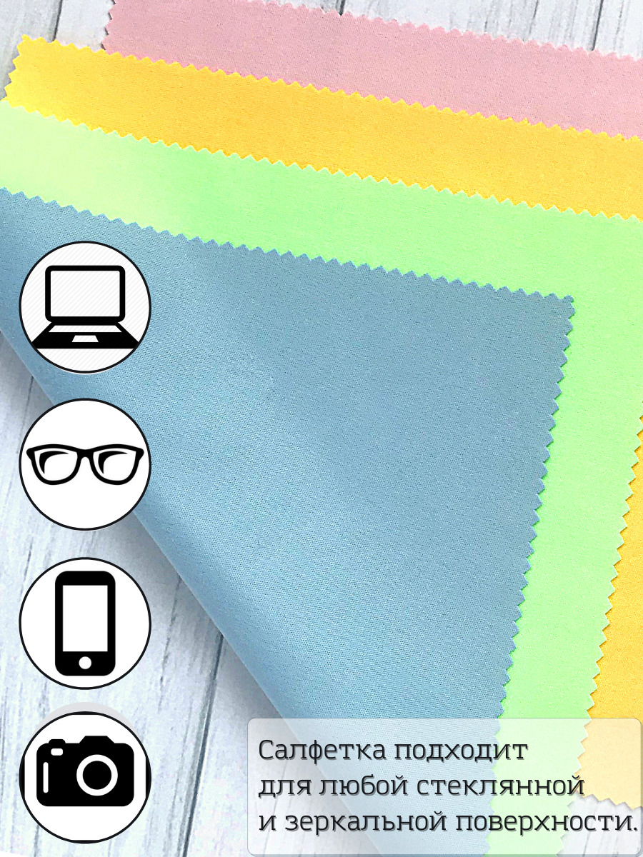 Набор салфеток из микрофибры поможет удалить грязь и жирные пятна с ваших очков, экранов телефонов, смартфонов, ноутбуков и планшетов. Безопасно очищает объективы фото и видеокамер. Салфетка для экрана подойдет для любой стеклянной и зеркальной поверхност