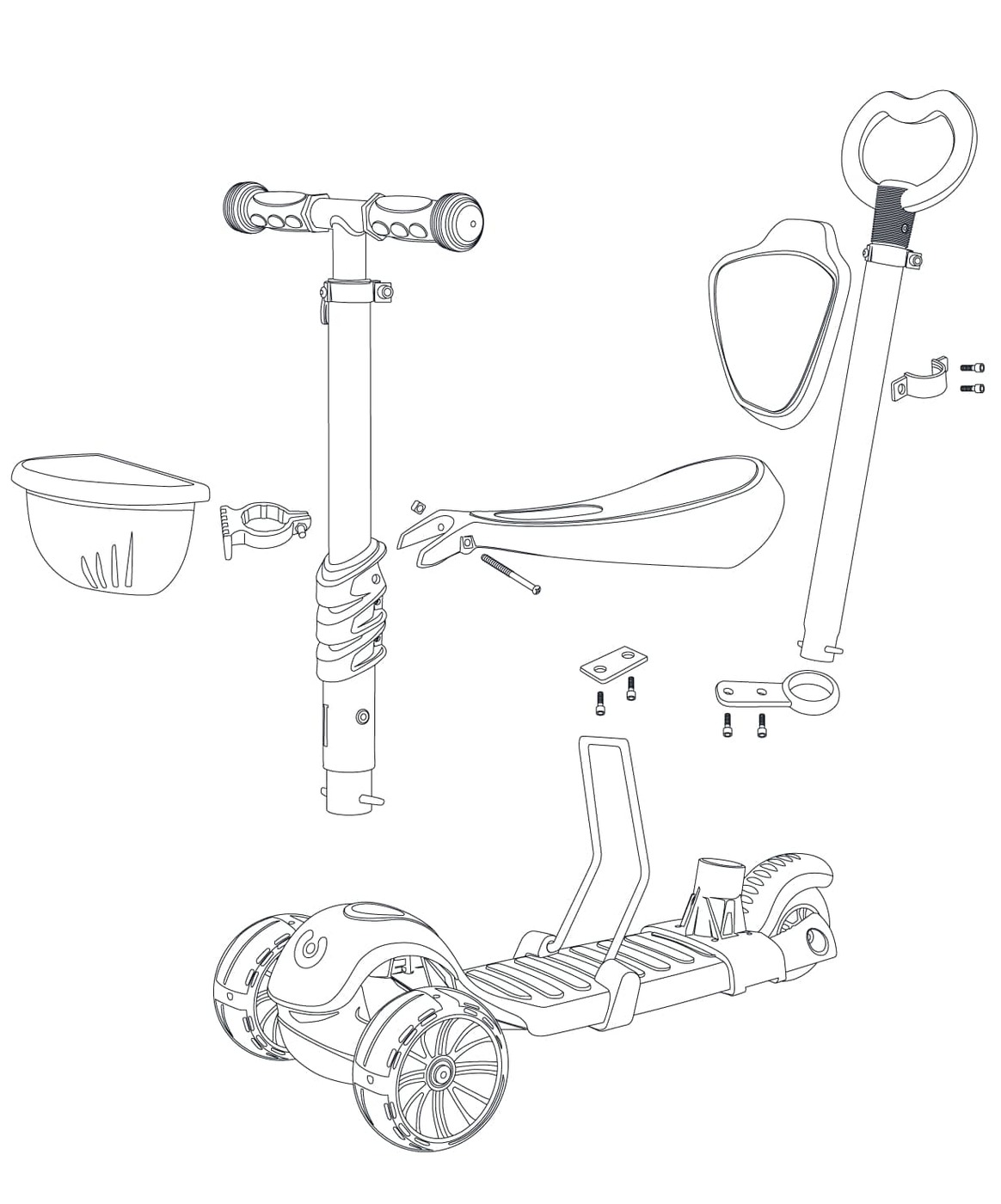 Крепкая и безопасная модель для маленьких гонщиков!Starlet снабжён съемным детским креслом, которое надежно крепится к основе самоката. Наклонная система поворота очень удобна для детей и способствует развитию координации. В комплект входит специальная съ