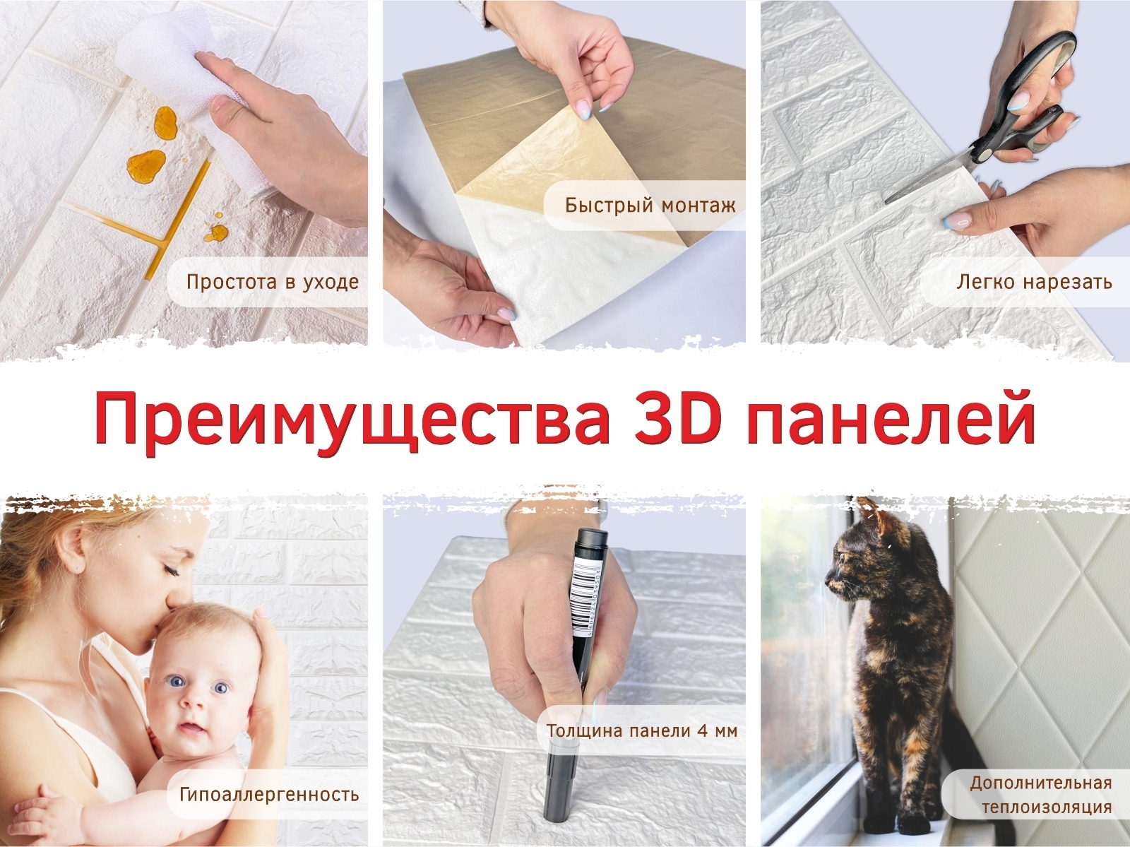 Панели самоклеющиеся для стен - это идеальный и практичный элемент отделки любого помещения. 3D стеновые панели прекрасно подходят для кухни, прихожей, балкона, потолка и даже ванной комнаты. Наклейки для интерьера не выделяют вредных веществ и абсолютно