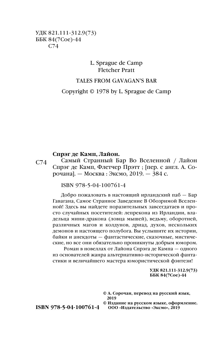 - Книга написана двумя классиками фэнтези: Лайоном Спрэгом де Кампом и Флетчером Прэттом, лауреатами премий «Хьюго», «Небьюла», «Гроссмейстер фантастики». - Разнообразные по стилю истории: фантастика, мистика, фэнтези. - Собраны все истории, в полном сост
