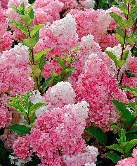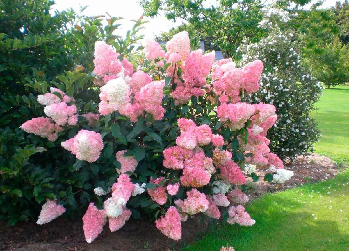 Гортензия метельчатая - кустарник высотой до 2 м. Крона широко раскидистая. Листва темно-зеленая. Цветки собраны в соцветия-метёлки длиной до 30 см, сначала белые, а со временем розовеют, образуются на побегах текущего года. Для обильного цветения рекоме