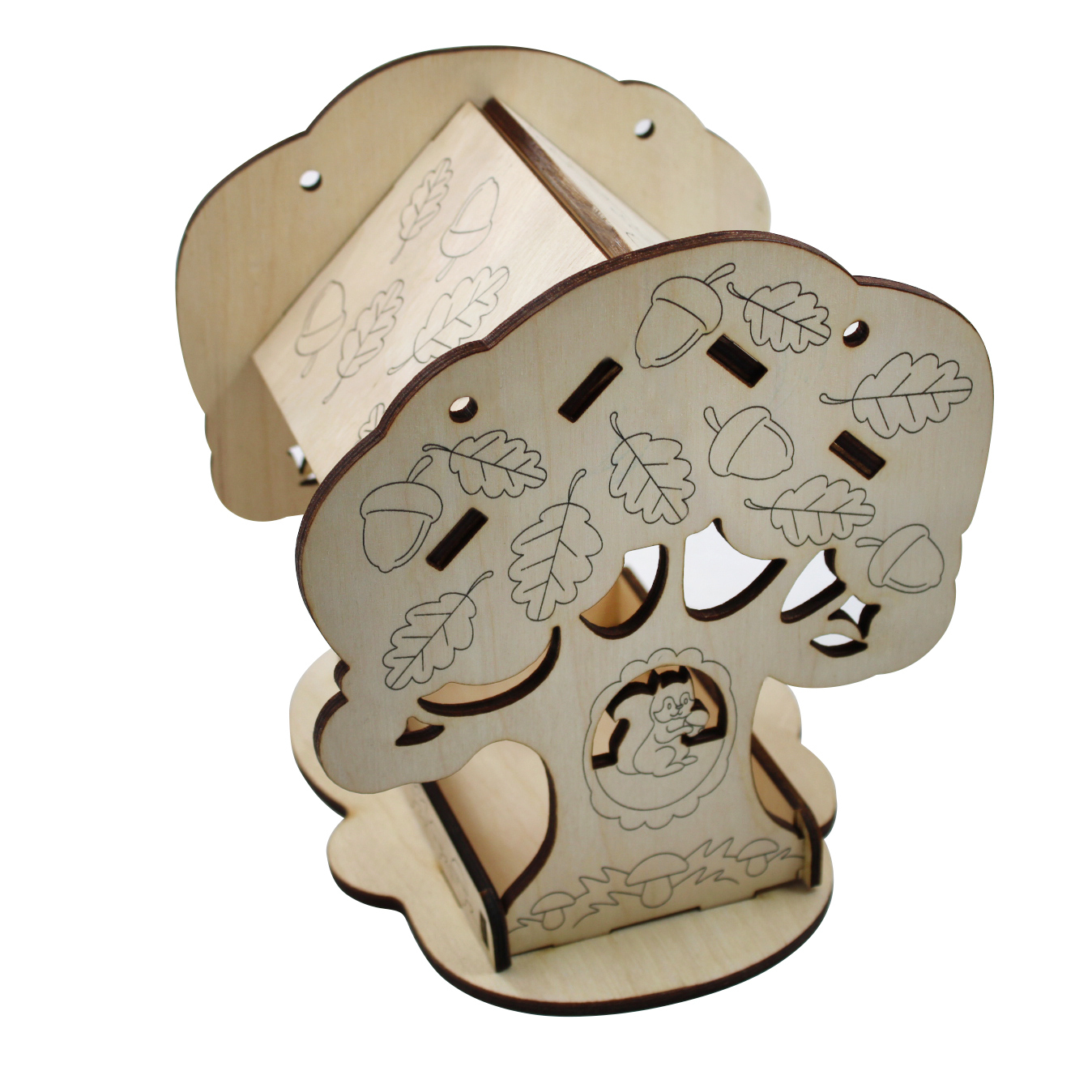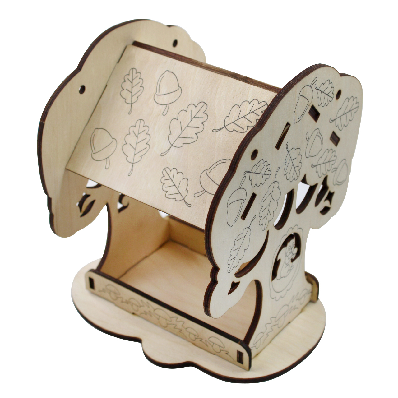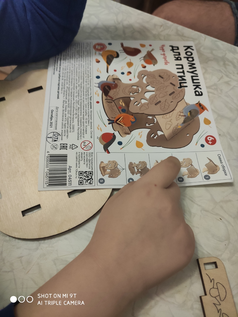 Сделайте доброе дело – соберите кормушку для птиц! Состав: • боковые стенки (173 х 145 мм) – 2 шт. • дно (162х134 мм) – 1 шт. • элементы крыши (117 х 80 мм) – 2 шт. • боковые бортики (125 х 20 мм) – 2 шт. Размеры кормушки в собранном ви