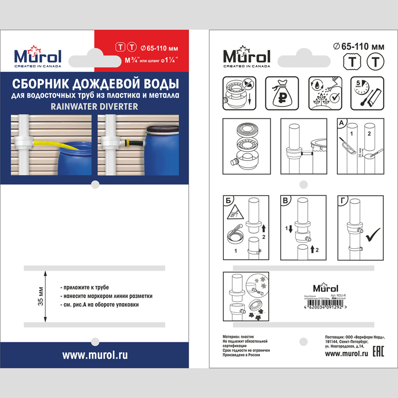 Водосборник Murol.Водосборник позволяет собирать дождевую воду в установленные емкости и использовать ее в хозяйственных нуждах. Сбор воды подобным образом защищает фундамент здания от повреждения водными потоками, помогает защитить от излишней влаги подв