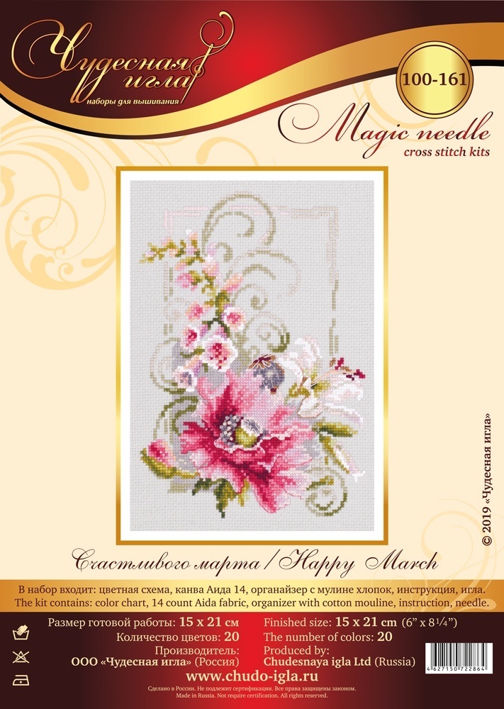 Набор для вышивания крестом укомплектован:· Канва Аида 14 светло-серого цвета· Хлопковое мулине· Количество цветов мулине - 20· Гобеленовая игла №24· Цветная символьная схема· Подробная инструкция на русском языке.Рамка, паспарту в комплект не входят - пр