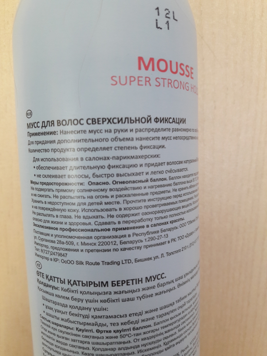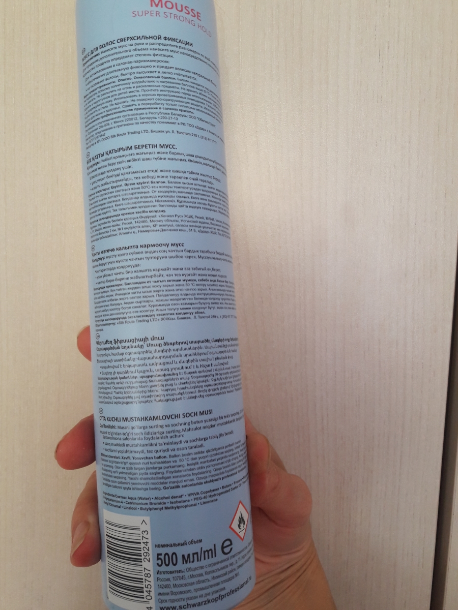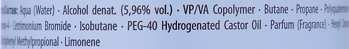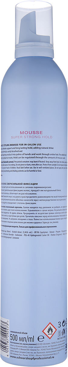 Способ применения:Хорошо встряхните балон. Направляя балон вниз, выдавите необходимое количество мусса, учитывая длину волос и технику стайлингаСостав:Aqua, Alcohol denat. (5,96%vol), VP/VA Copalymer, Butane, Propane, Polyquaternium-16, Polyquaternium-4,
