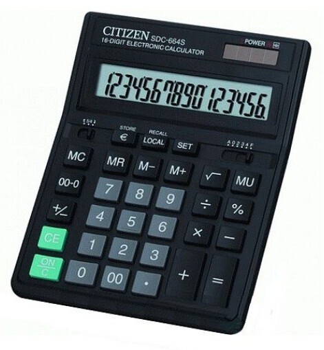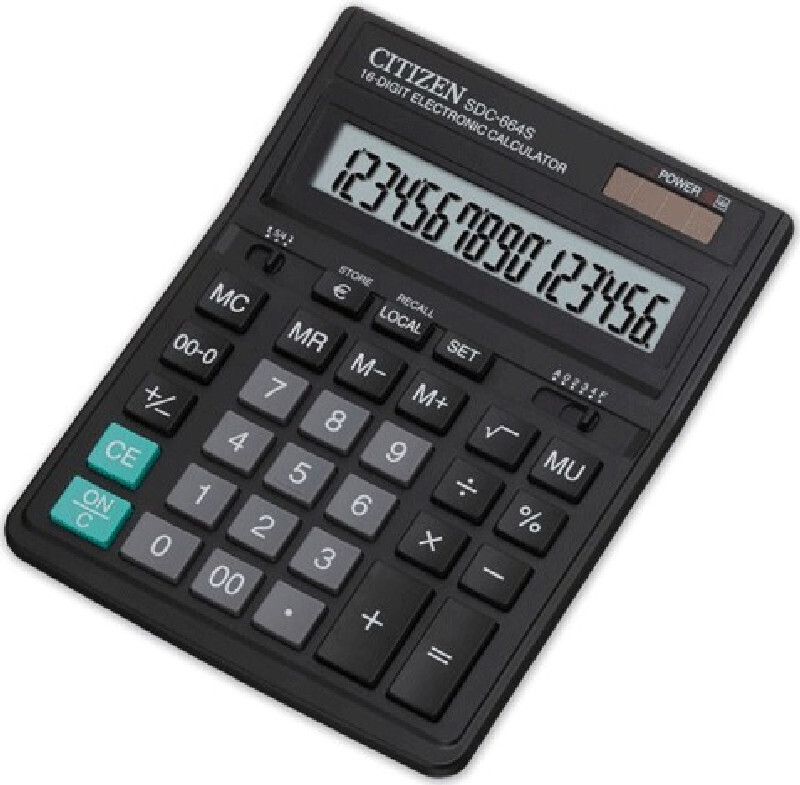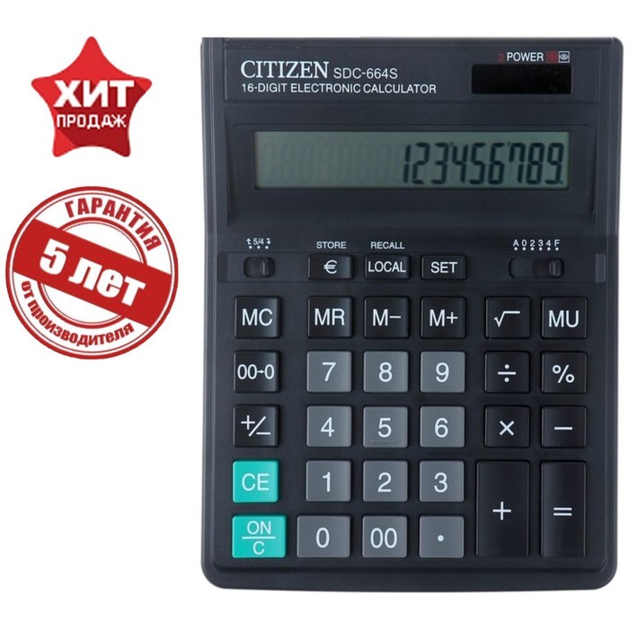 SDC-664S Калькулятор CITIZEN настольный SDC-664S, 16 разрядов, двойное питание, 199x153 мм