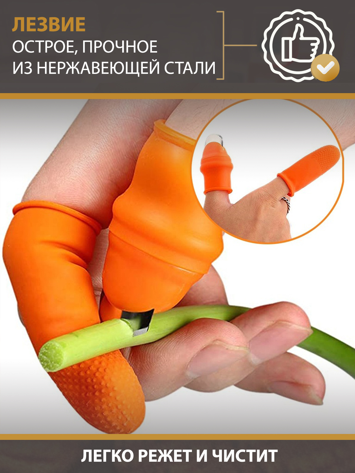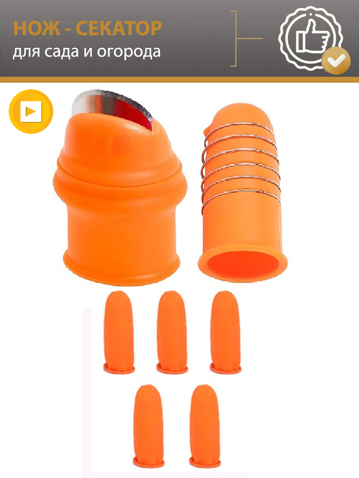 Комплектация:1 нож-напальчник, 1 насадка со стальной пружиной, 5 дополнительных силиконовых напальчников.Описание:Дачный секатор нож-напальчник с лезвием идеально подходит для сбора овощей и фруктов (огурец, баклажаны, помидоры, бобы, арбуз, дыня, виногра