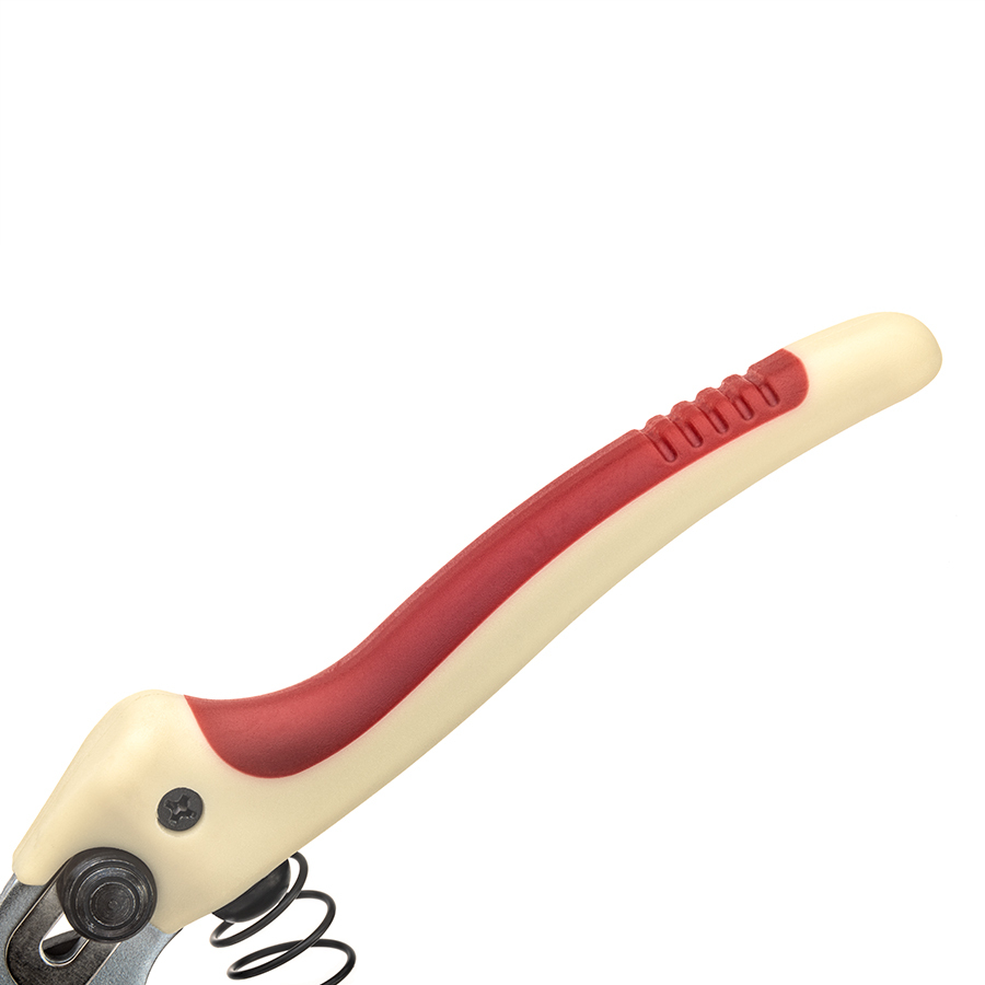 Максимальный диаметр реза: 18 мм.Длина секатора: 190 мм.Механизм: Пружинный (спиральная пружина).Верхнее лезвие: Японская углеродистая сталь марки SK-5 с тефлоновым покрытием.Наковальня: Хромированная углеродистая сталь марки S50C.Рукоятка: Двухкомпонентн