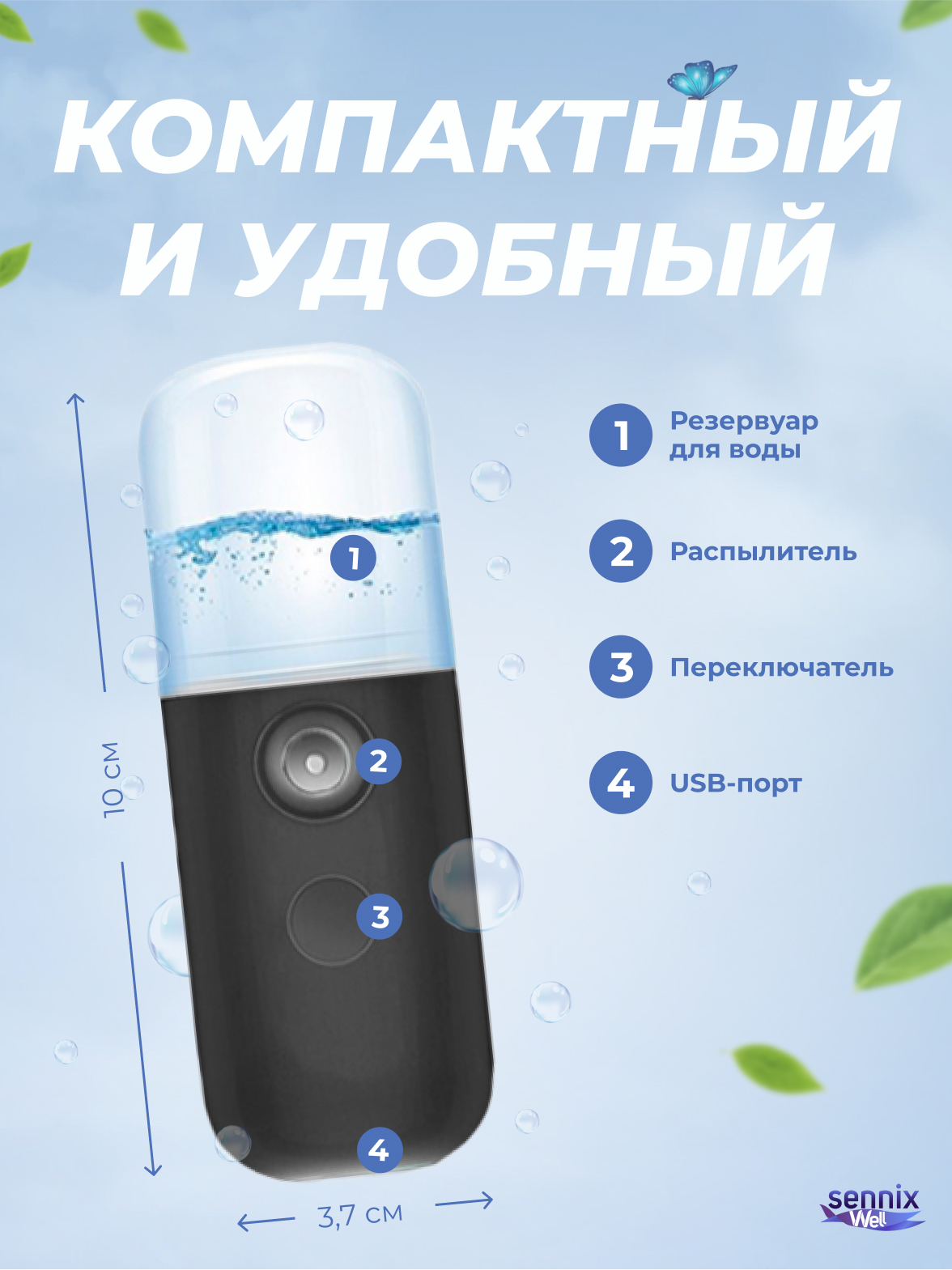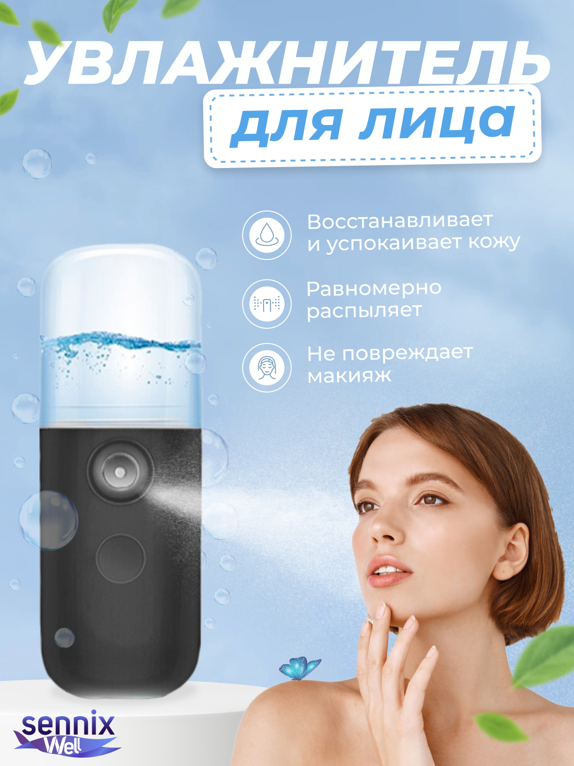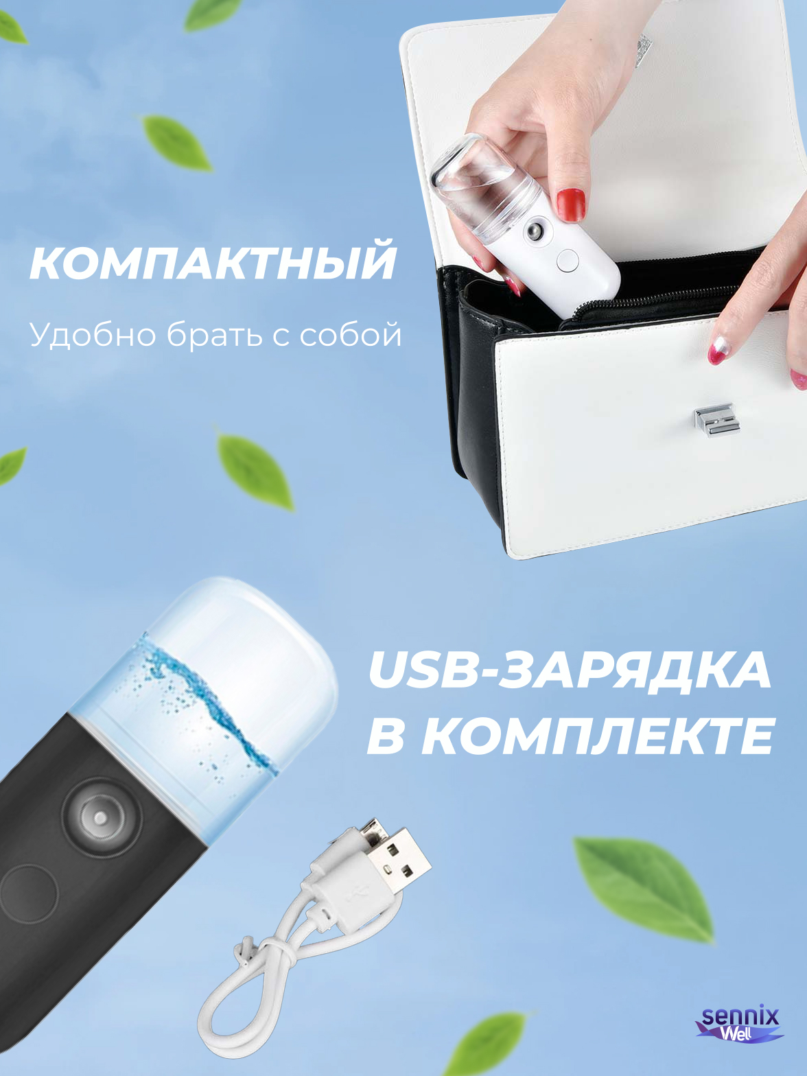 Кожа лица постоянно нуждается в увлажнении. Позаботьтесь о здоровье Вашей кожи вместе с портативным увлажнителем для лица! Миниатюрный прибор позволит Вам увлажнить кожу в любых условиях. Благодаря своим компактным размерам он поместится в любую сумочку,