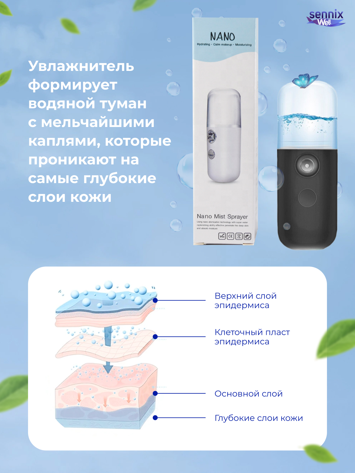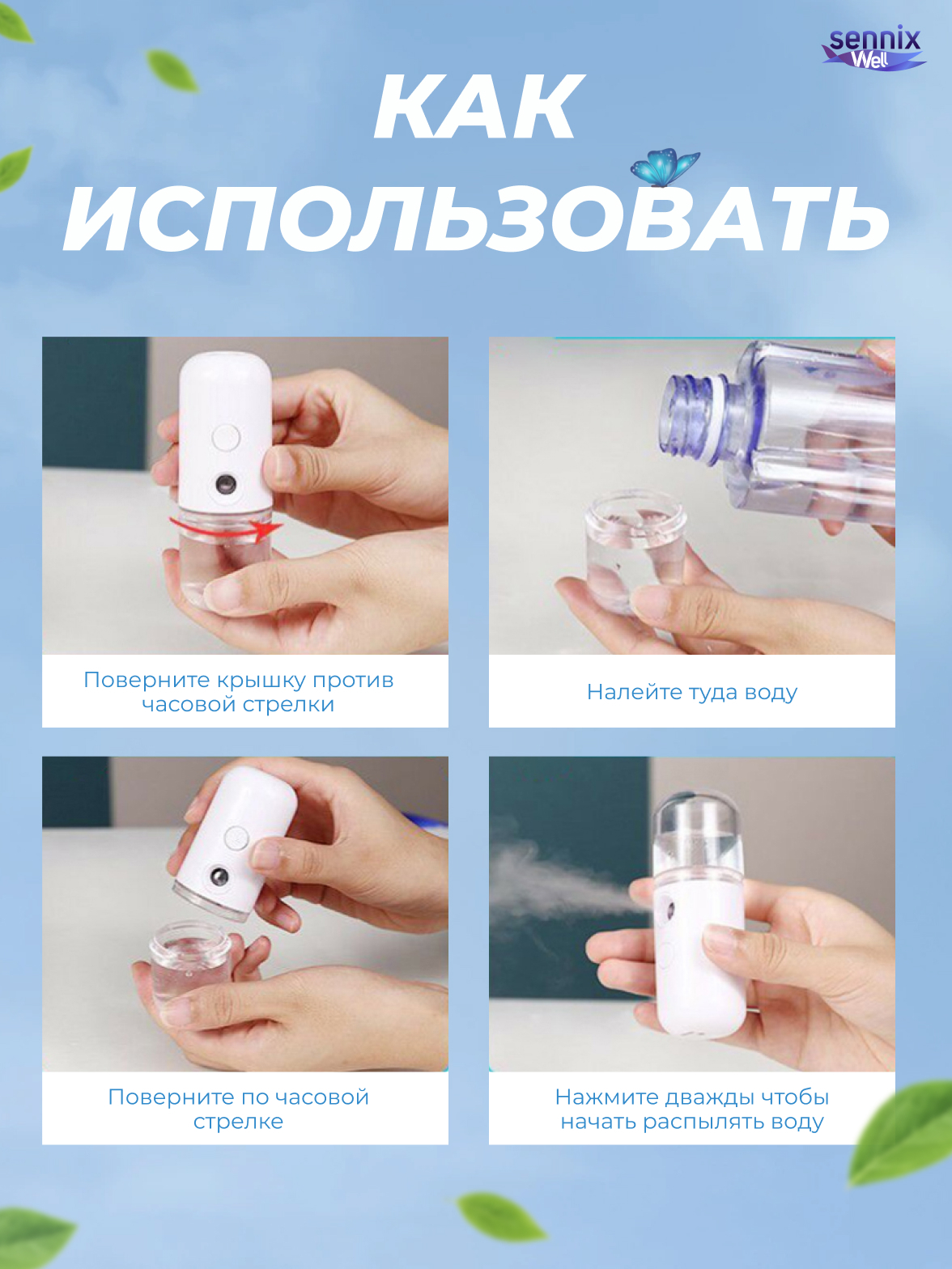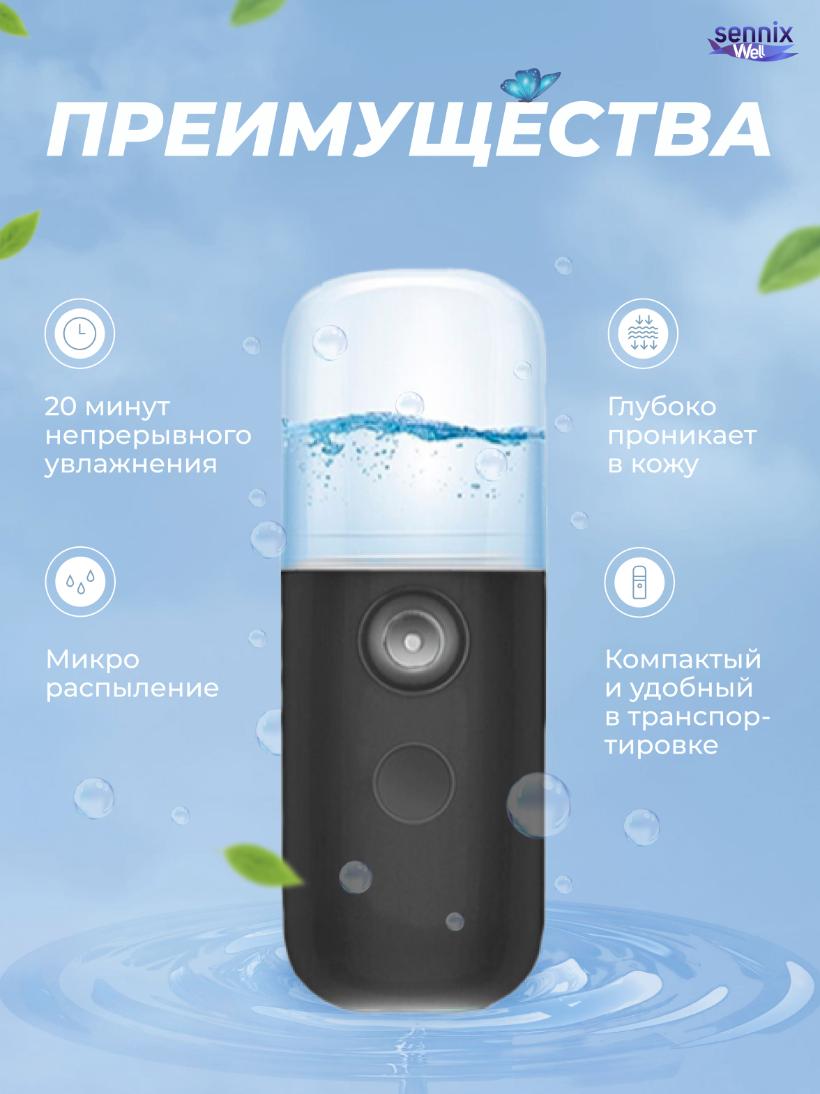Кожа лица постоянно нуждается в увлажнении. Позаботьтесь о здоровье Вашей кожи вместе с портативным увлажнителем для лица! Миниатюрный прибор позволит Вам увлажнить кожу в любых условиях. Благодаря своим компактным размерам он поместится в любую сумочку,
