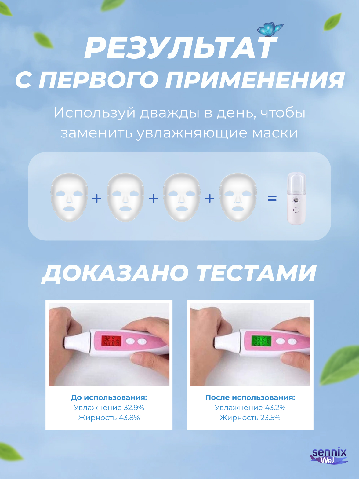 Результат применения аппаратаОчищение, Увлажнение