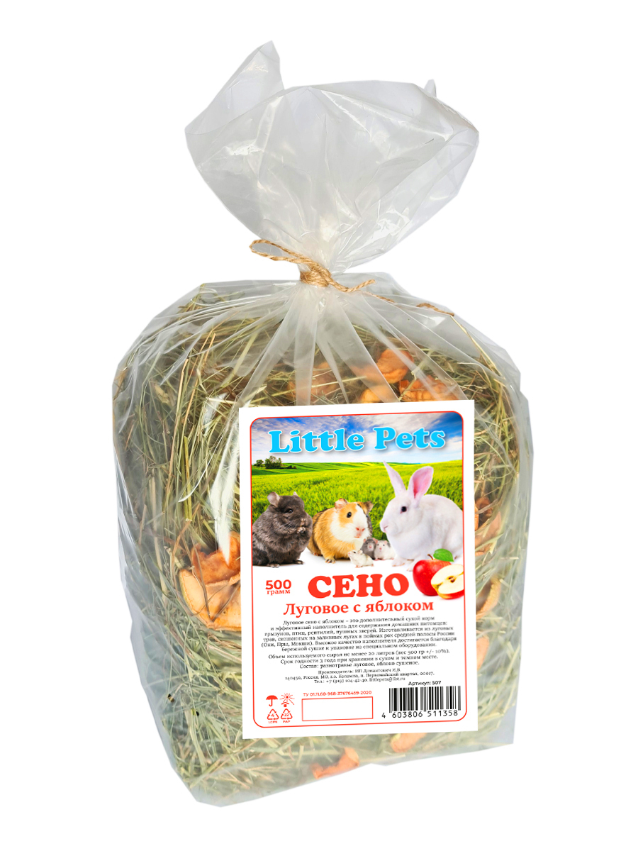 Луговое сено с Яблоком непрессованное - эффективный наполнитель для клеток и дополнительный сухой корм для всех видов грызунов. Луговое разнотравье, собранное на заливных лугах в поймах рек Оки, Мокши и Прони в экологически чистых местах.Сушеное яблоко -