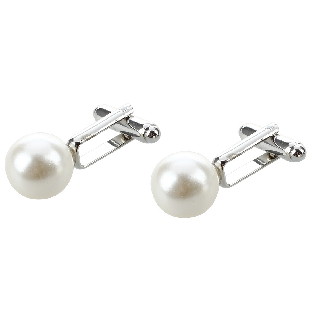 Серебряный 1 пара круглых мужских костюмов с искусственным жемчугом, запонки, металлические запонки, 0,47 дюйма, серебро