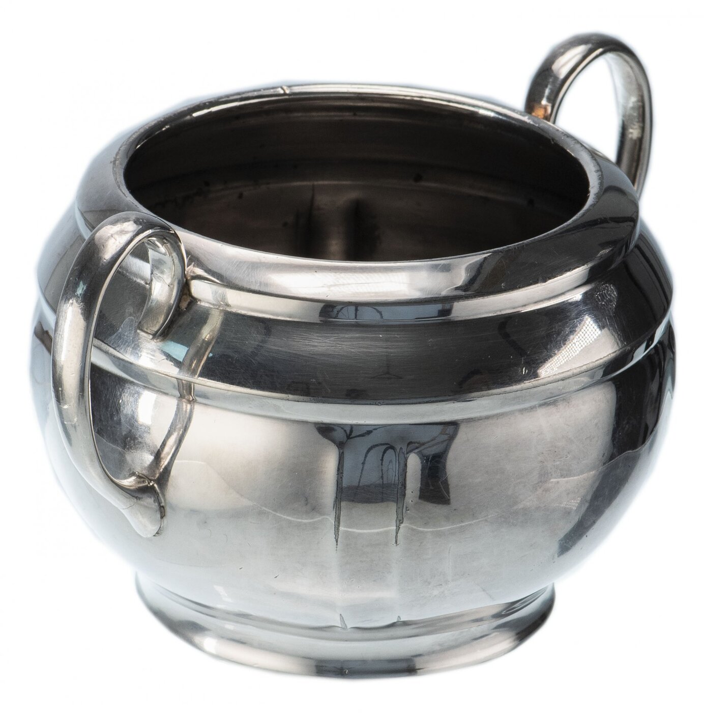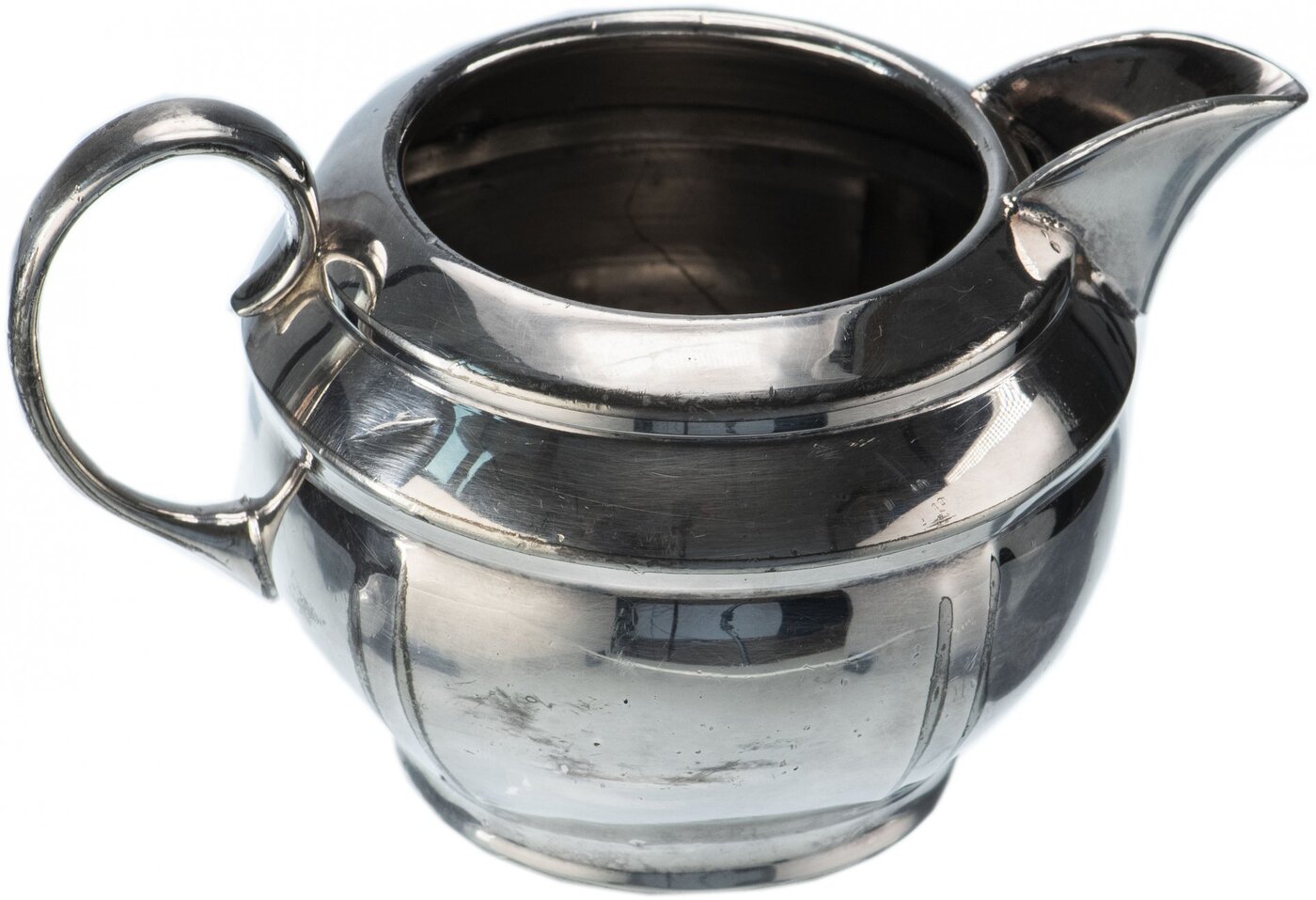 Сервиз из 3 предметов, чайник, сахарница и молочник. Имеется сход посеребрения, а также потертости. На дне клеймо "EPMB"."EPBM", или "Electroplated Britannia Metal" - вид гальванического серебрения, который используют для столовых приборов. Им также покры