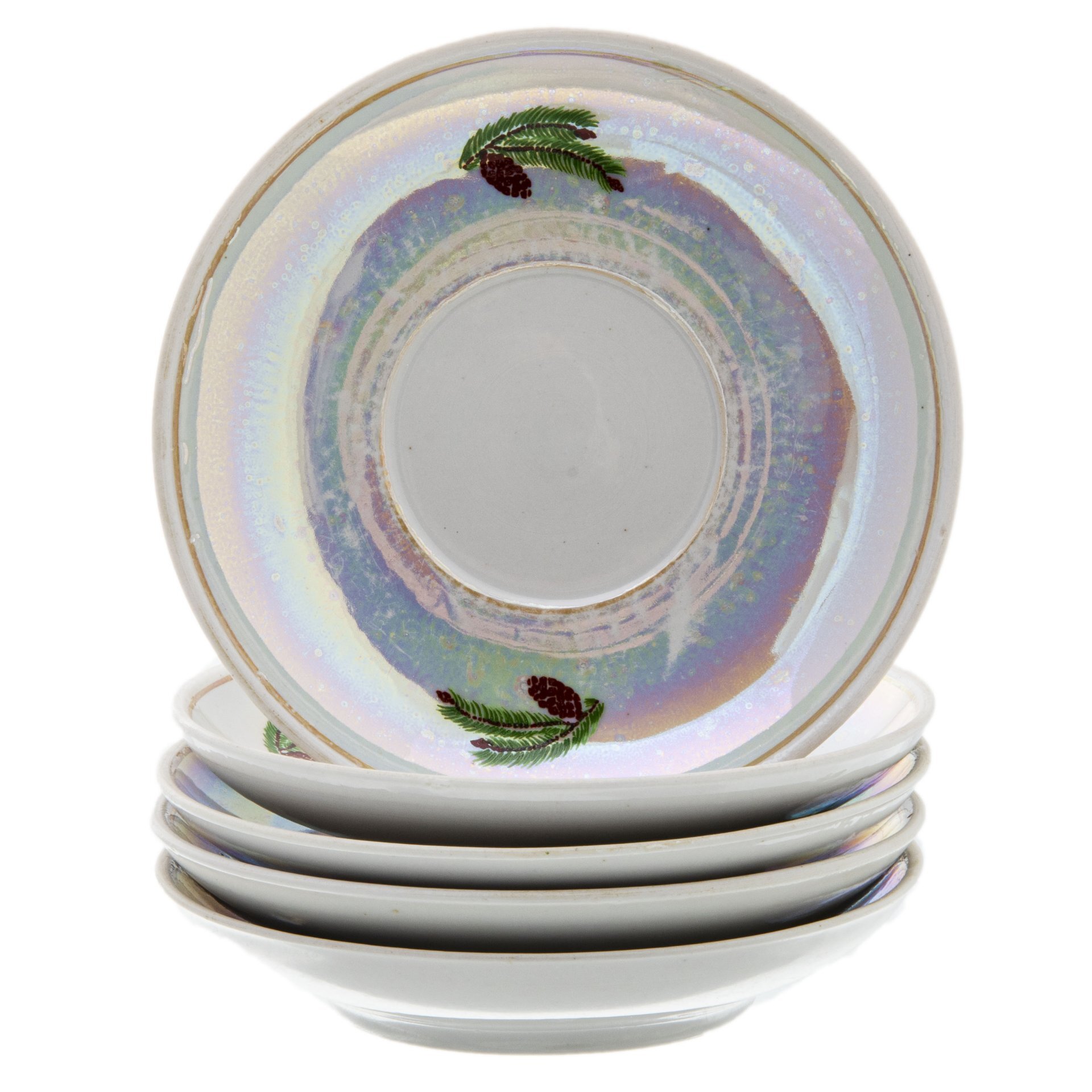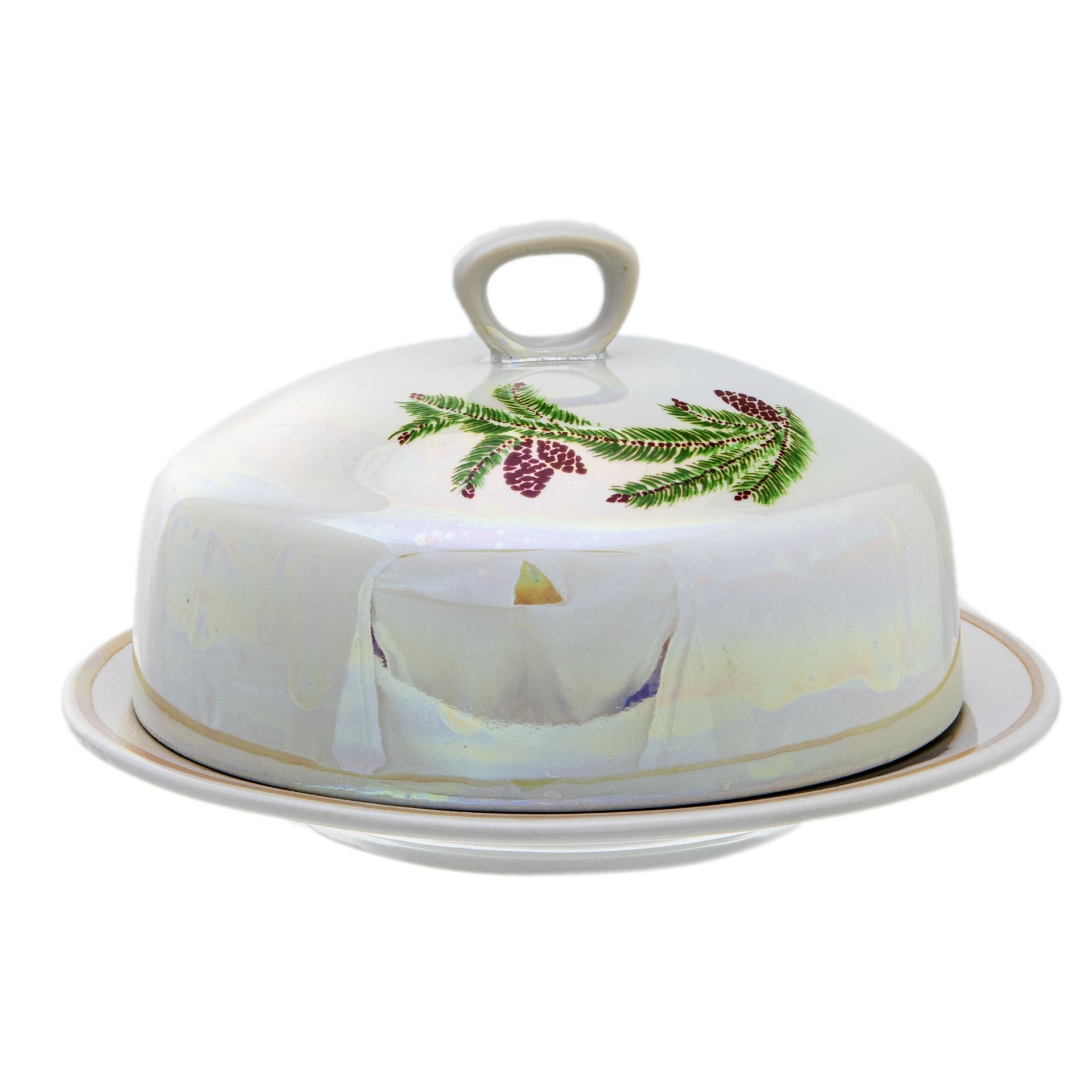 Сервиз чайный на 5 персон "Еловая ветка"состоит из:1) заварочного чайника, размерные характеристики: ширина - 86 мм, длина - 185 мм, высота - 127 мм, объем - 500 мл, вес - 448 г;2) сахарницы, размерные характеристики: ширина - 86 мм, длина - 153 мм, высот