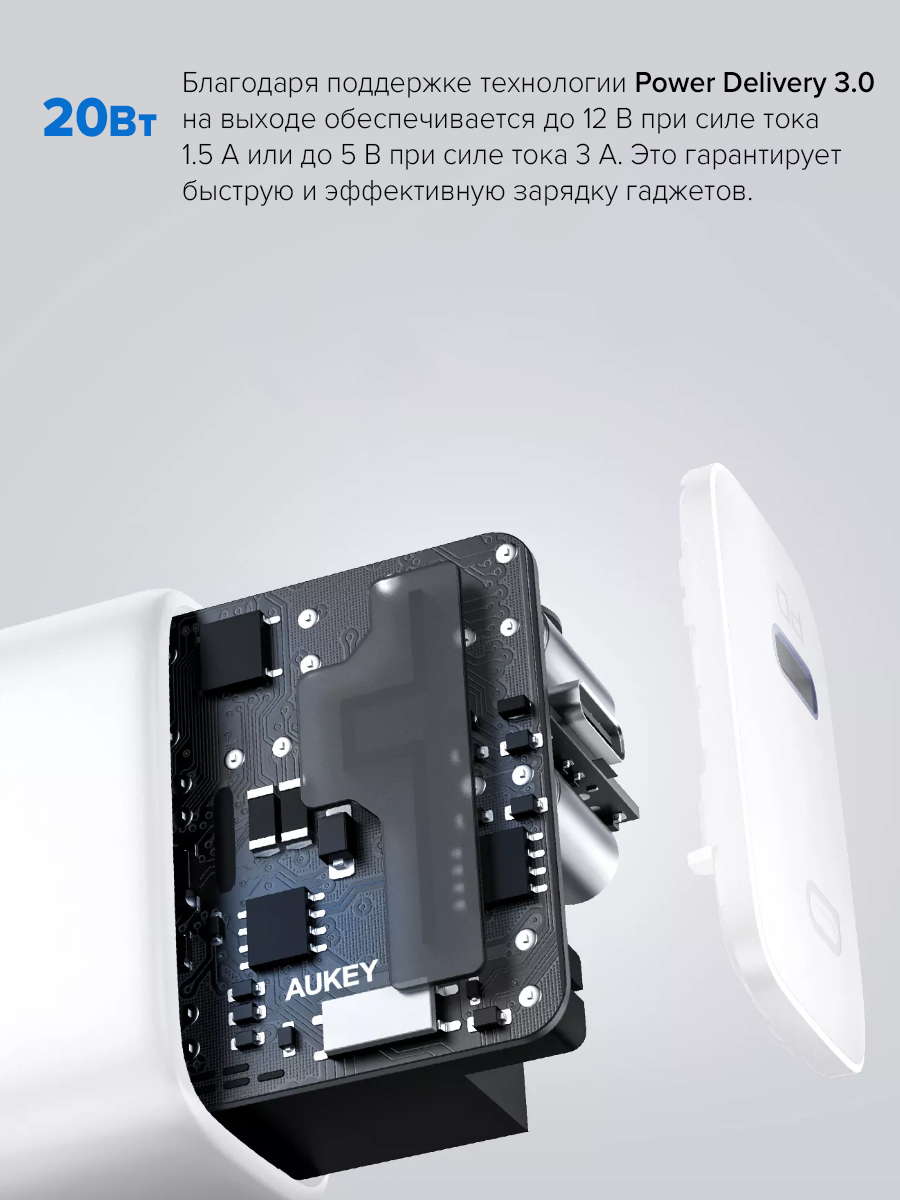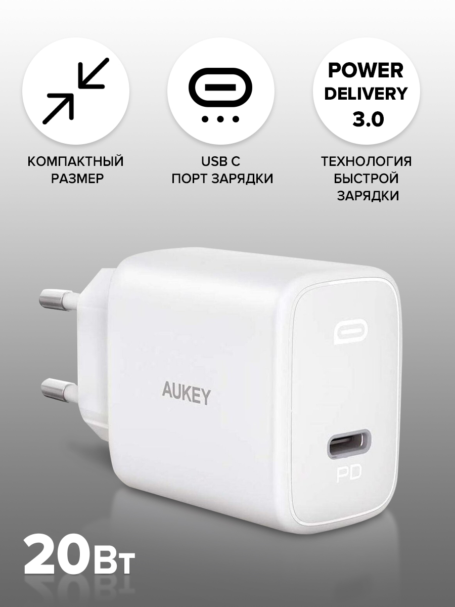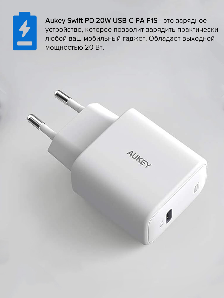 Комплектация:Зарядное устройство; ДокументацияОписание:ОПИСАНИЕ Aukey Swift PD 20W USB-C PA-F1S представляет собой стильное компактное сетевое зарядное устройство, которое позволит зарядить практически любой ваш мобильный гаджет. Оно обладает выходной мощ
