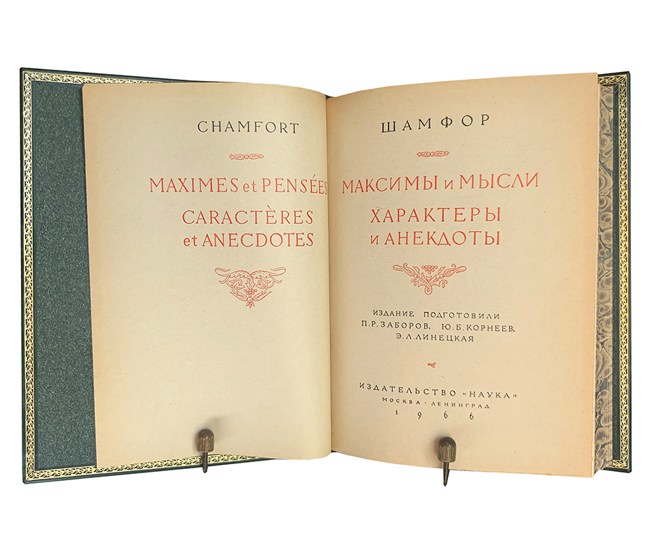 Издание знаменитой серии "Литературные памятники" в кожаном переплете с золотым и блинтовым тиснением, трехсторонним художественно окрашенным обрезом и шелковым ляссе.Издание 1966 г.В книге представлены мысли и изречения французского моралиста XVII-XVIII