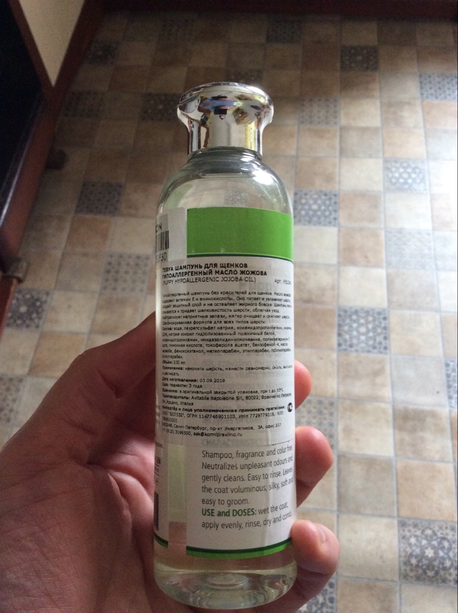 Гипоаллергенный шампунь без красителей для щенков. Масло жожоба содержит витамин Е и аминокислоты. Оно питает и увлажняет шерсть, создаёт защитный слой и не оставляет жирного блеска. Шампунь легко смывается и придает шелковистость шерсти, облегчая уход. Н