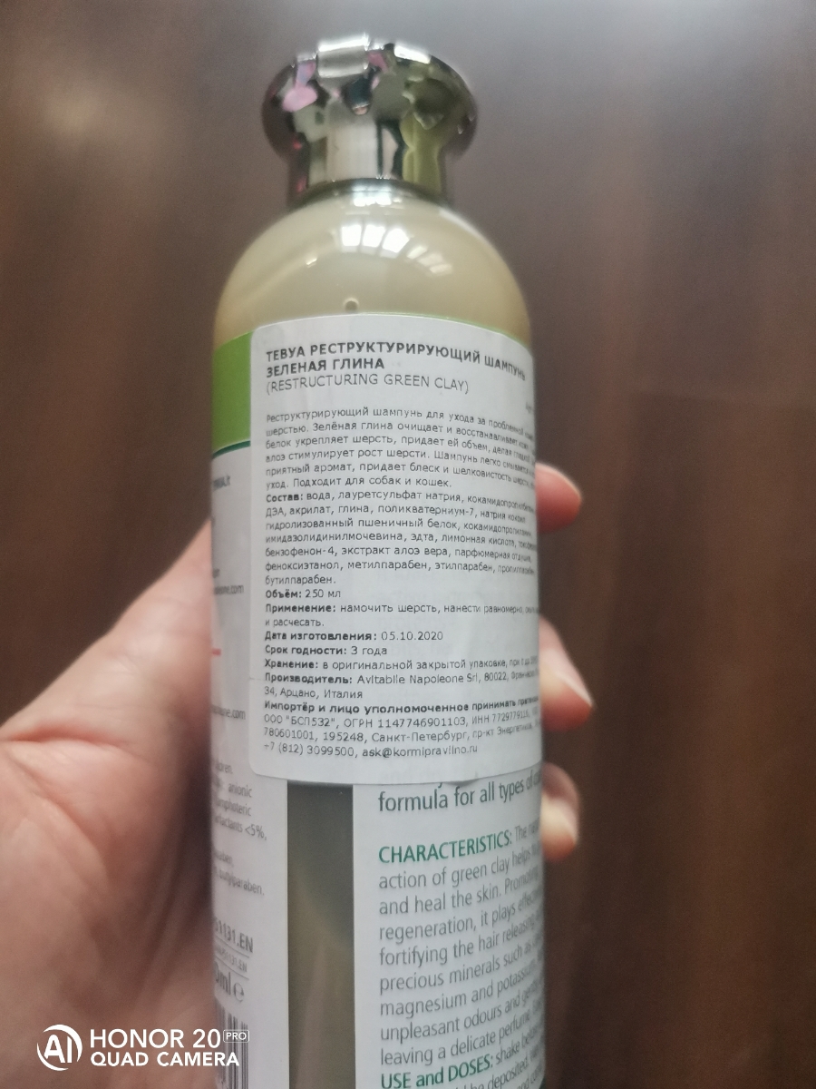 Реструктурирующий шампунь для ухода за проблемной кожей и шерстью. Зелёная глина очищает и восстанавливает кожу. Пшеничный белок укрепляет шерсть, придает ей объем, делая гладкой. Экстракт алоэ стимулирует рост шерсти. Шампунь легко смывается и оставляет