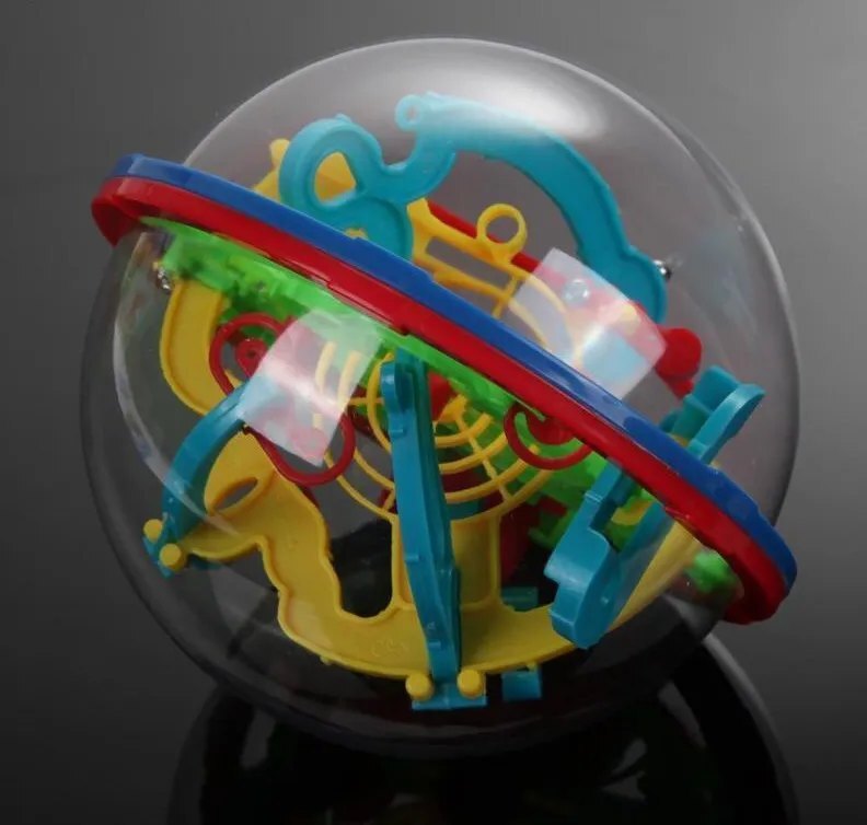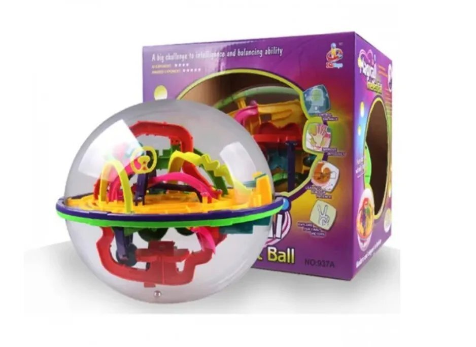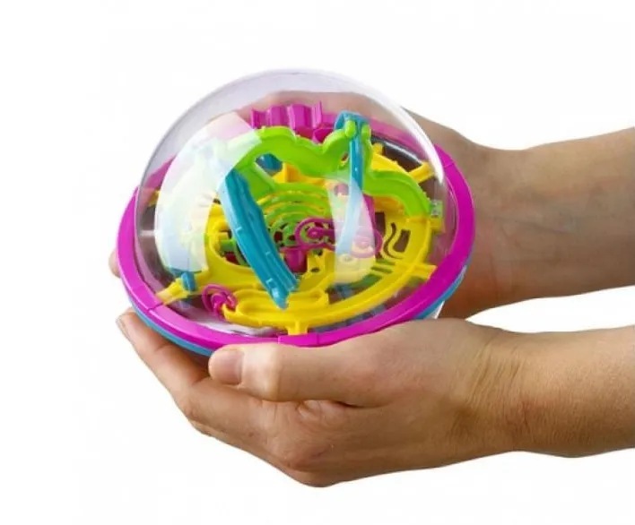 Трехмерный шар-головоломка состоит из прозрачной пластиковой сферы, внутри которой располагается множество всевозможных дорожек и препятствий разных цветов.Для решения главной задачи, вам необходимо поворачивать игрушку в пространстве так, чтобы последова