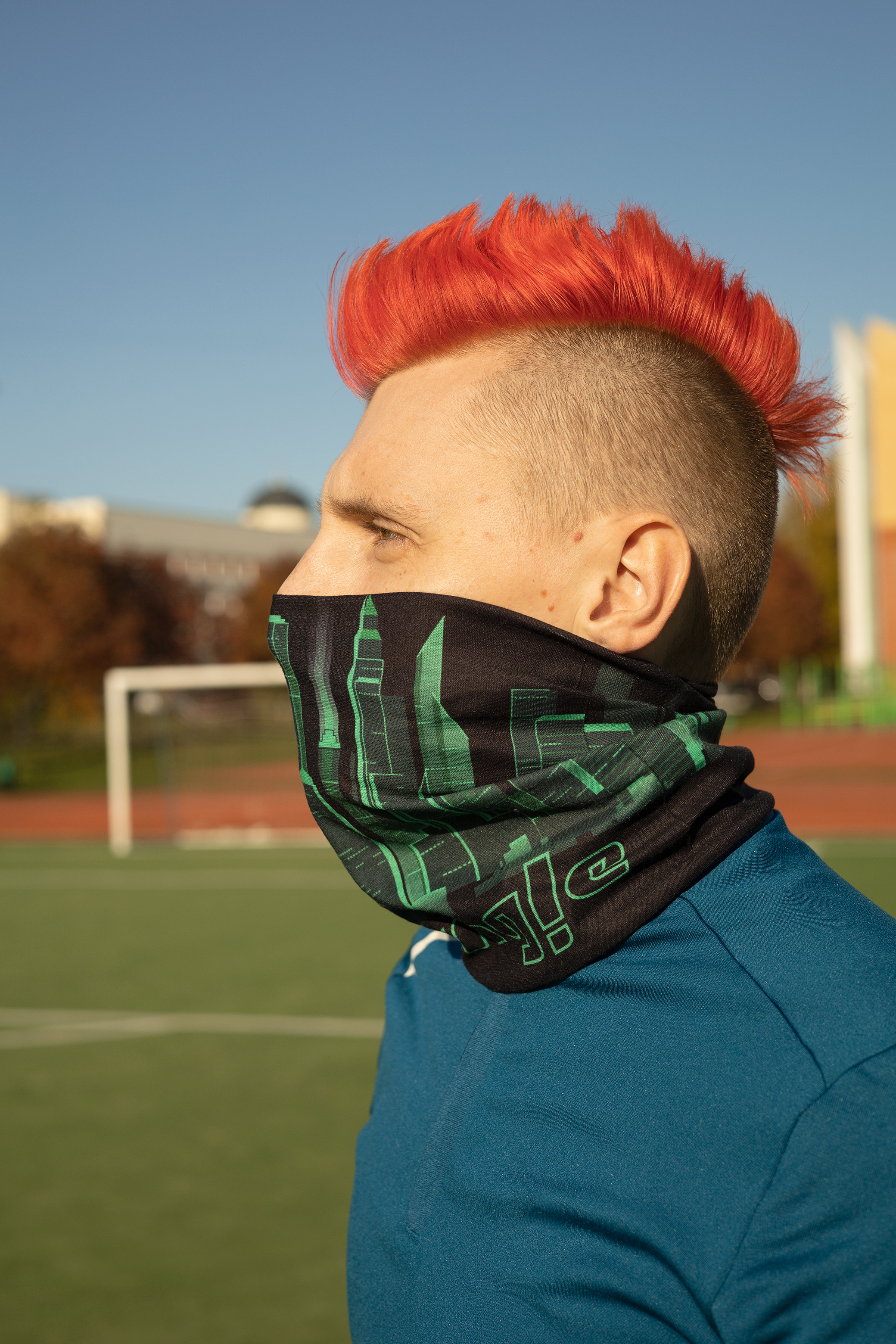 Многофункциональный шарф для любой погоды. Изготовлен из тонкого, эластичного материала с защитой от УФ-лучей, с фирменными принтами