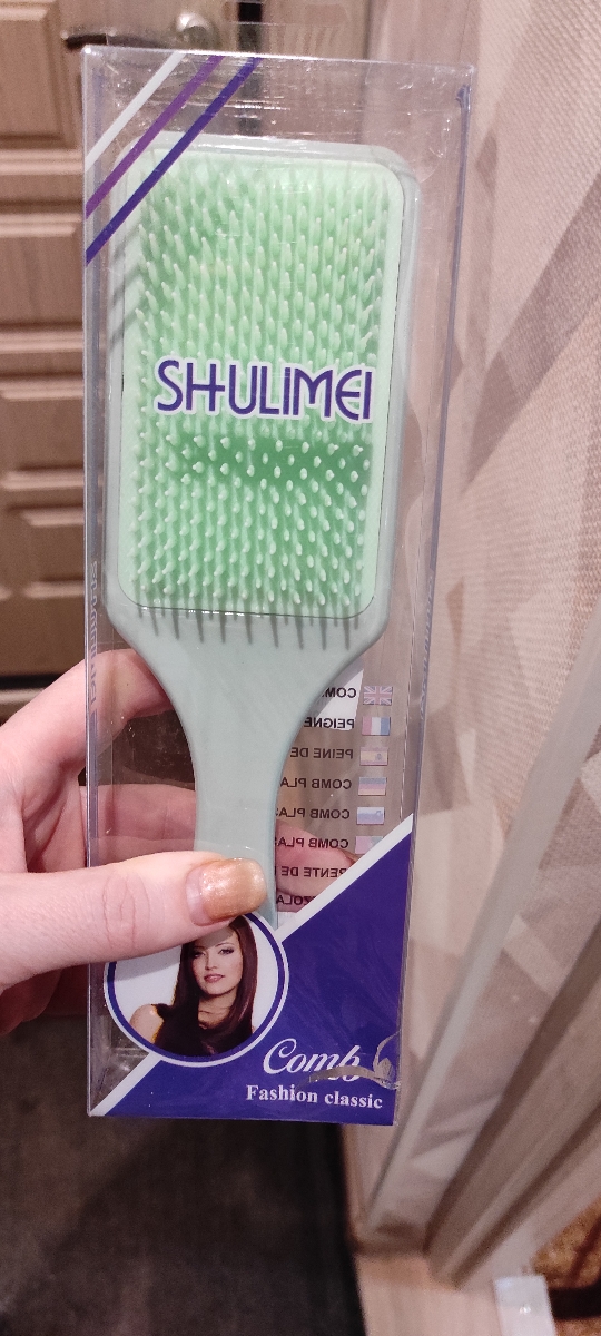 Массажная расческа для волос с зеркалом.Подходит для всех типов волос, прямых, вьющихся, тонких и густых или поврежденных. Отлично удаляет узелки и спутанность. Гибкая пластиковая щетина щетки подходит для взрослых и детей с нежной или чувствительной коже
