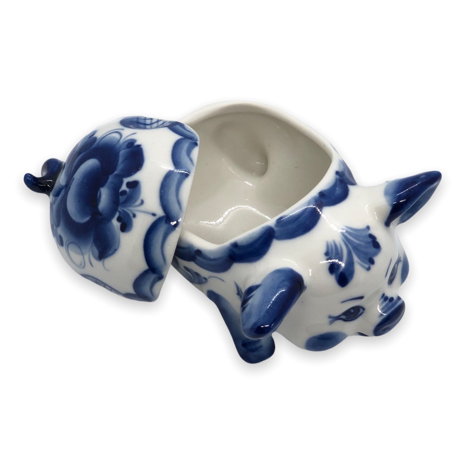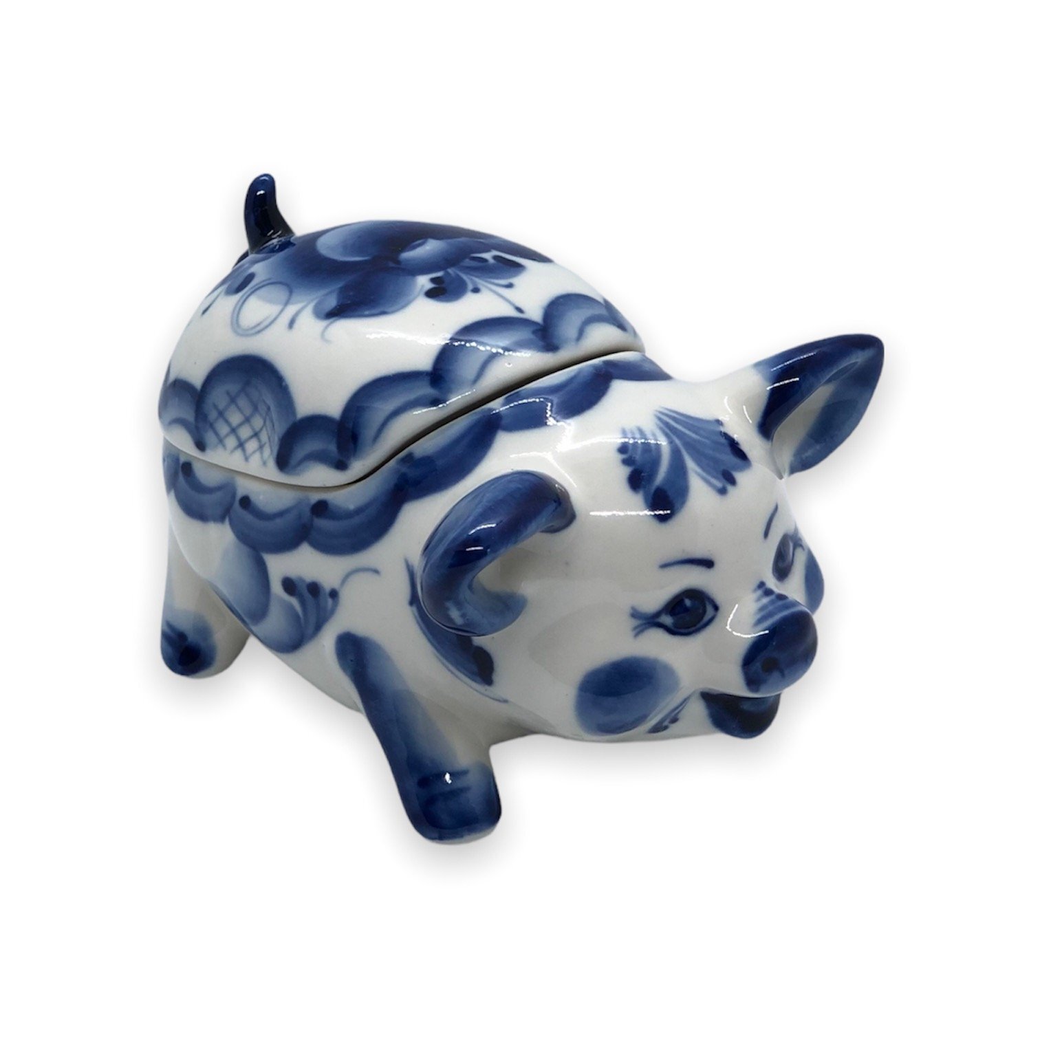 Шкатулка "Хрюшка" фарфор гжель ручная работаВид росписи: Гжель, синий, подглазурнаяРазмер изделия, ДхШхВ, см 10,5х8х6,5.Уникальность каждого изделия: весь процесс производства проходит только вручную. На каждом изделии ставится подпись художника или живо