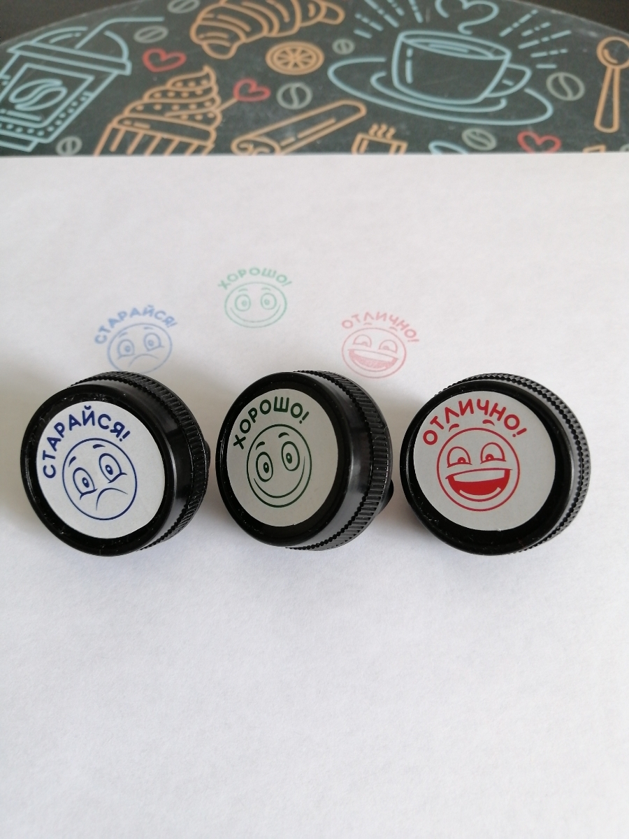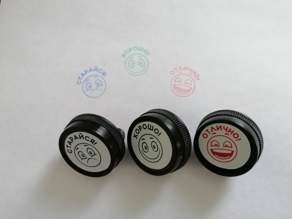 Печати для проставления оценок в тетради со смайликами Незаменимые помощники учителя Компактные ручные оснастки со встроенной подушкой, занимают совсем мало места. Нажмите на красную кнопку чтобы окрасить клише и проставьте изображение на лист .