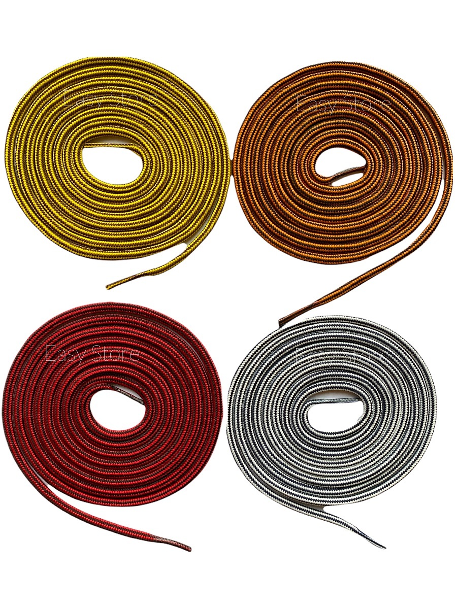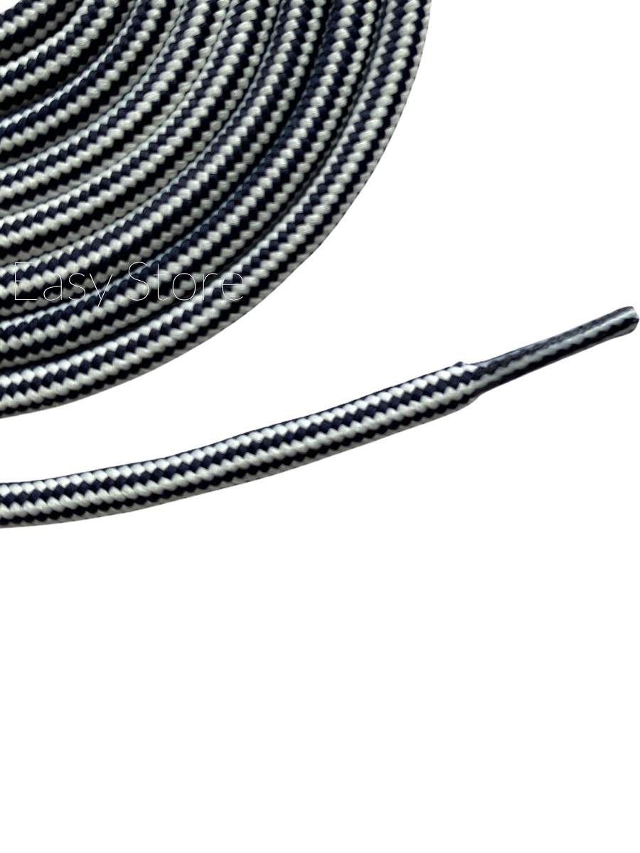 Шнурки, в упаковке 1 пара (2 штуки). Длина: 150см. Диаметр: 4 мм. Цвет: белый/темно-синий. Состав: полиэстр 100%