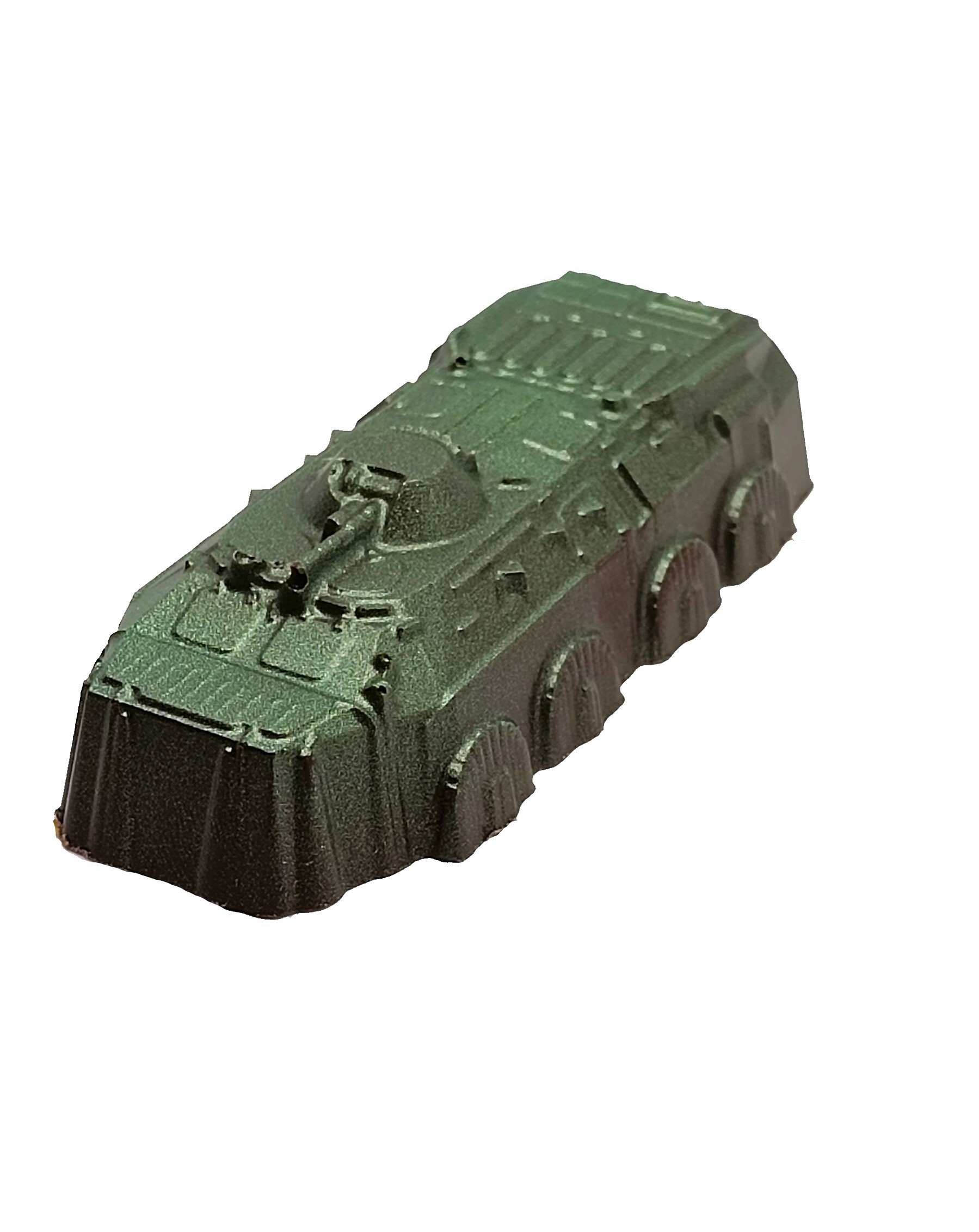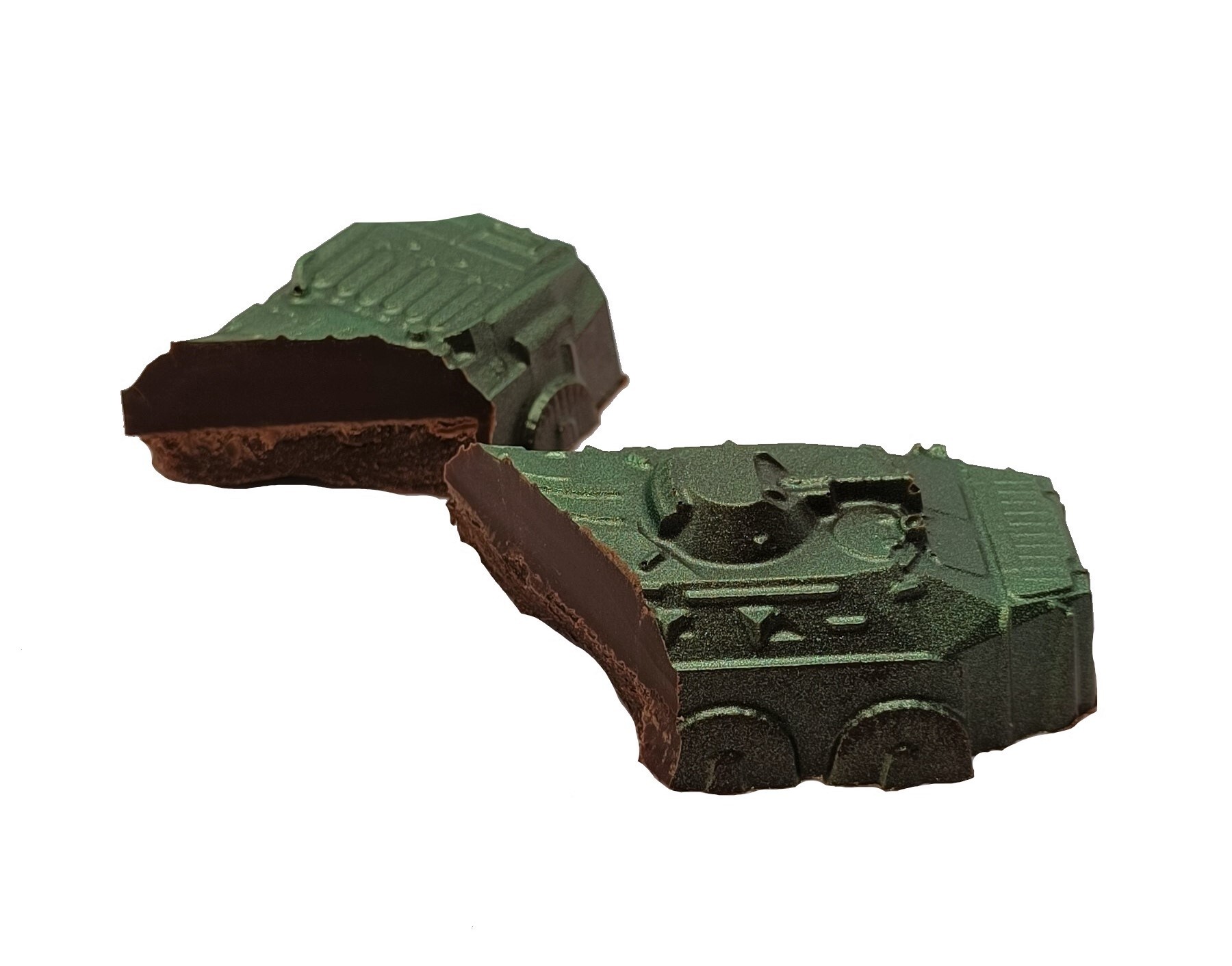 Фигура из шоколадной глазури в виде машины БТР станет приятным дополнением к подарку, необычным сувениром, или украшением для торта.Подарите яркую эмоцию, и отличное настроение!Изделие создано из классического темного шоколада. Имеет нежный сбалансированн