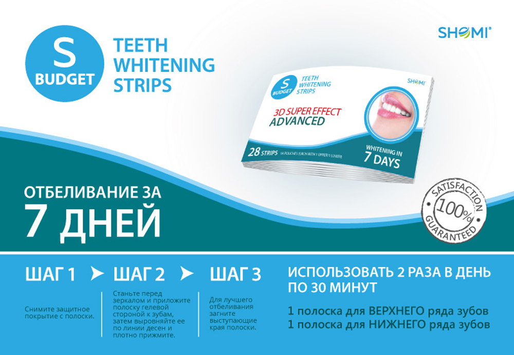 Состав средства:Glycerin, Hydrogen Peroxide, CarbomerОписание:Отбеливающие полоски SBUDGET 3D SUPER EFFECT ADVANСED 7 DAYS специально разработанная серия полосок от компании SHOMI доступная в бюджетной упаковке. Продвинутый курс для тех, кто отбеливает зу