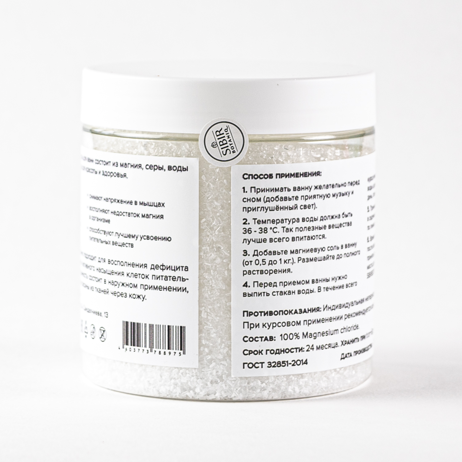 Способ применения1. Принимать ванну желательно перед сном (добавьте приятную музыку и приглушённый свет); 2. Температура воды должна быть 36 - 38 градусов С. Так полезные вещества лучше всего впитаются; 3. Добавьте магниевую соль в ванну (от 0,5 до 1кг.). Размешайте до по