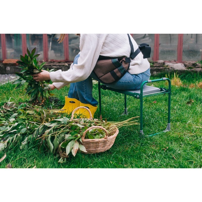 Складная скамья пригодится для различных работ на садовом участке и отдыха на природе. Вы не будете сидеть в неудобном положении, когда пропалываете грядки. Скамью можно использовать в качестве подставки для цветов, расположив растения каскадом.характерис