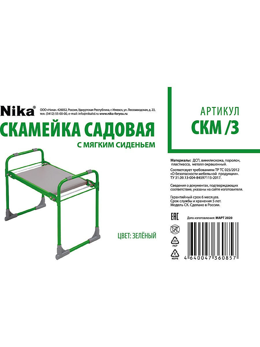Комплектация:Скамейка складная перевертыш- 1Описание:Скамейка складная перевертыш для рыбалки, сада и огорода (мягкая) Nika - это:==> прочность - нагрузка до 100 кг - устойчивый каркас из стальной трубы НАДЕЖЕН и долговечен;==> скамейка с мягким сиденьем