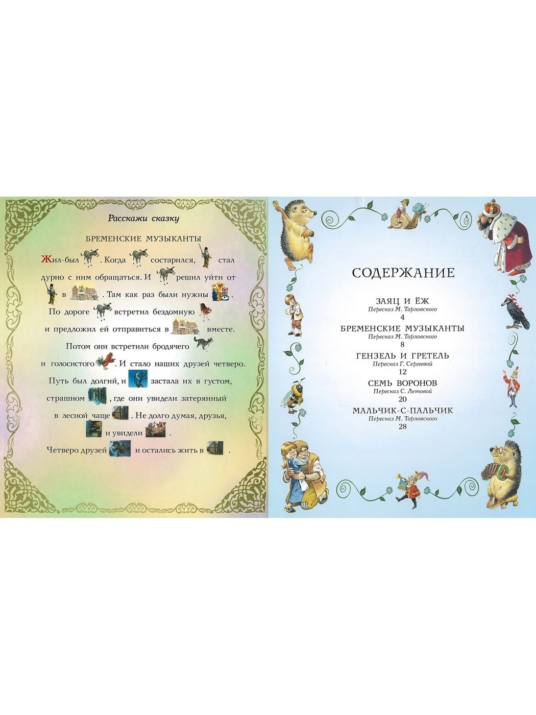 Сказки Братьев Гримм знамениты на весь мир, и их любят все-все малыши без исключения. Ведь в волшебных сказках возможно всё - неторопливый ёжик оказывается быстрее длинноногово зайца, непослушные мальчишки превращаются в воронов, а во вкусном сахарном дом