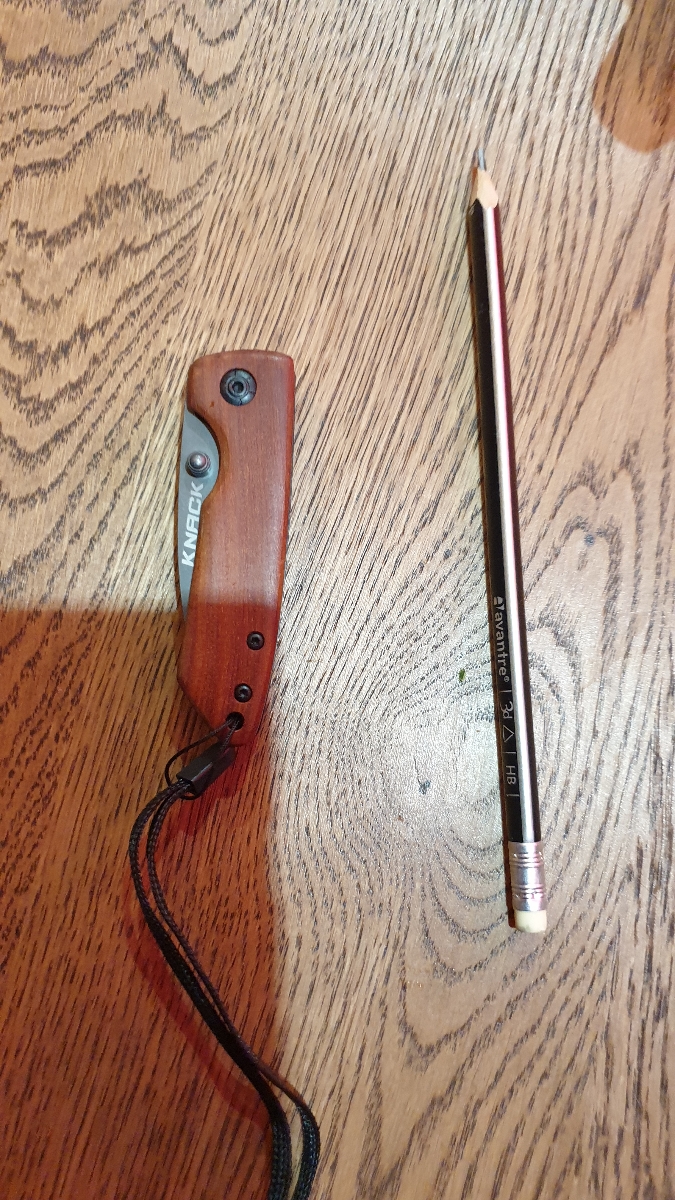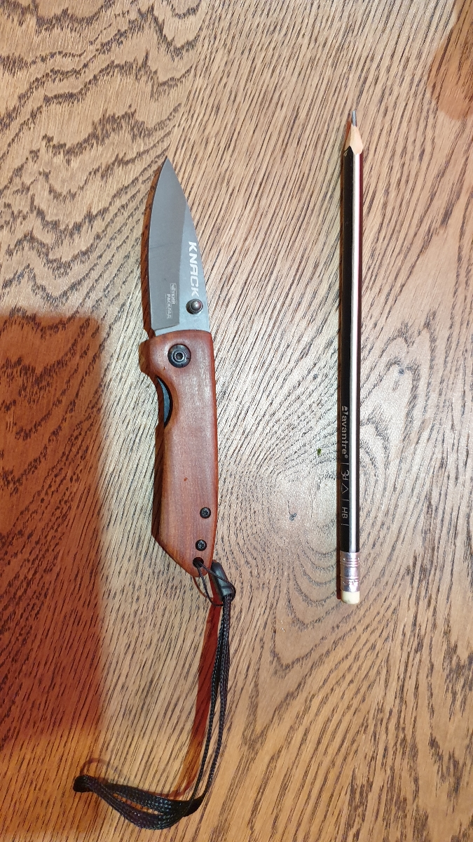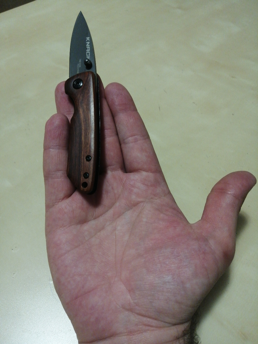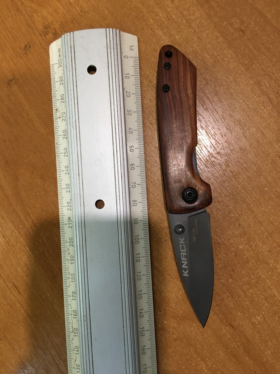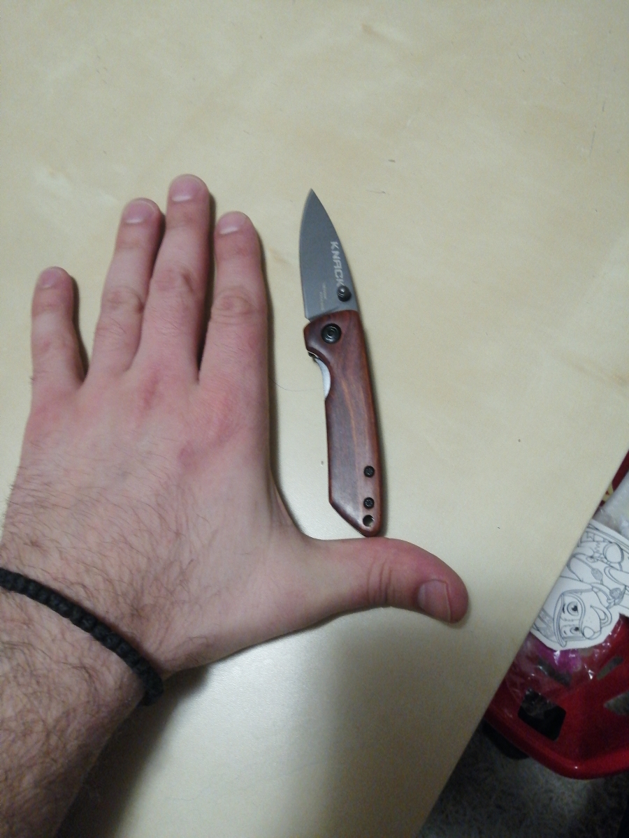 Нож складной Knack; серия: Чёткий Расклад; общая длина, мм: 145; длина клинка, мм: 60; толщина клинка, мм: 3; размер в сложенном виде, см: 8,6 х 2,4 х 1,6; масса, гр: 72; материал рукояти: дерево; тип замка: liner lock; сталь: 440; твёрдость стали, HRC: 5