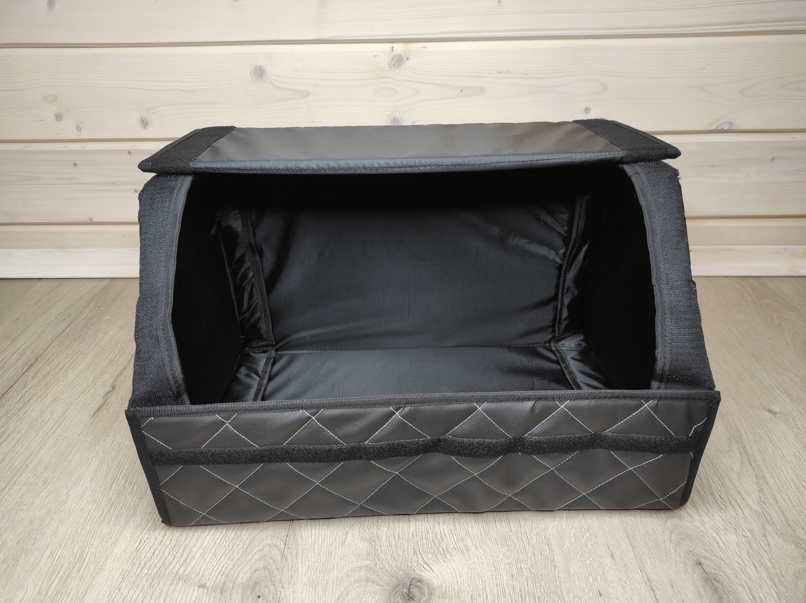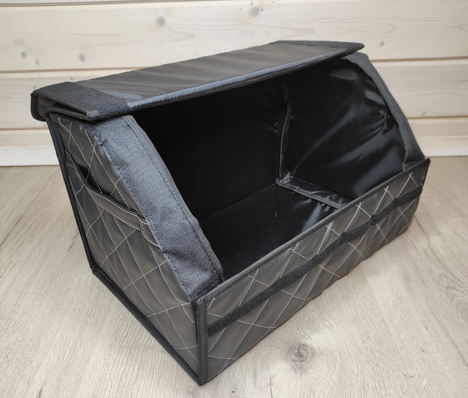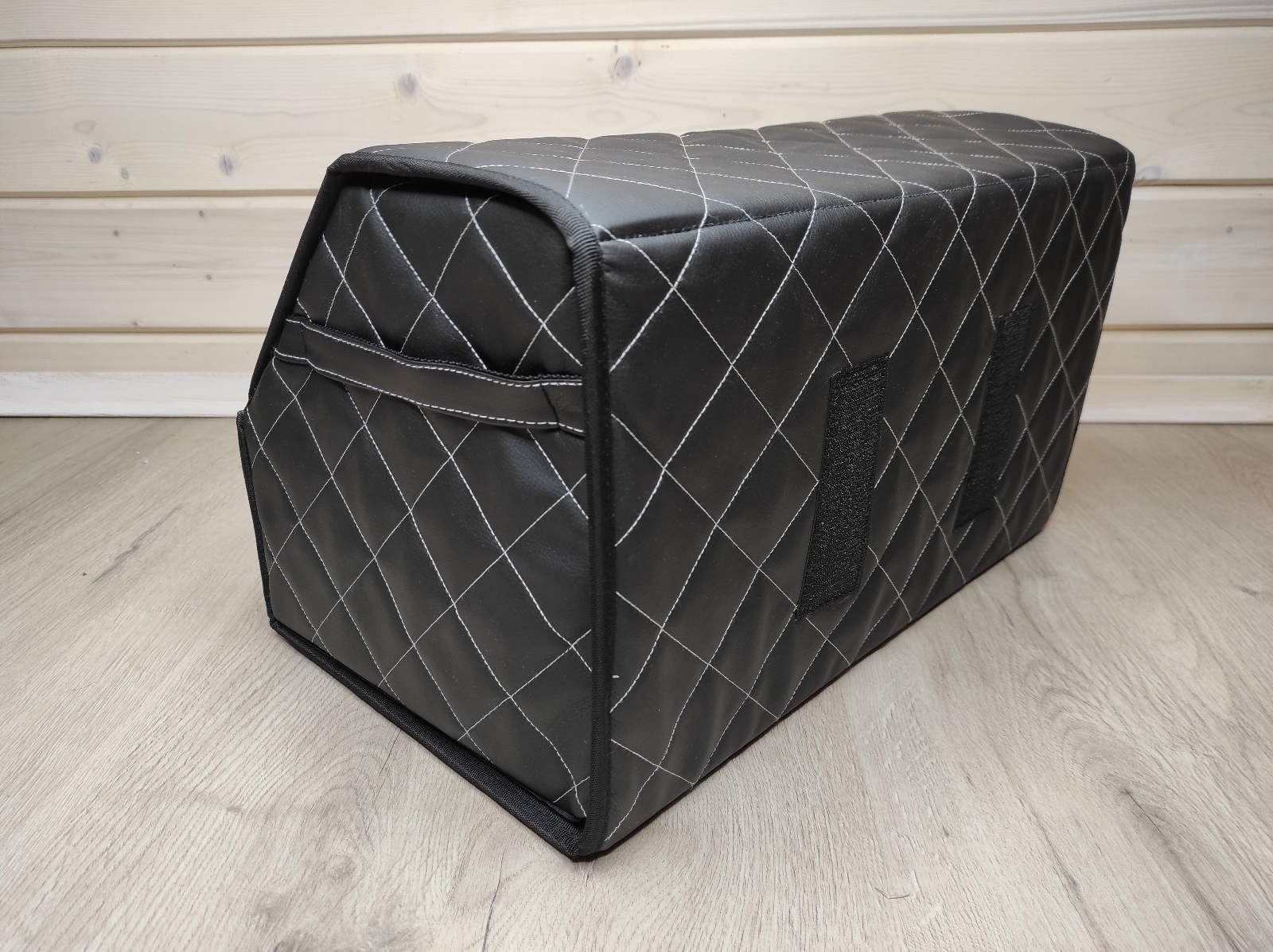 Комплектация:органайзер складнойОписание:Органайзер в багажник из экокожи-это стильный аксессуар, который позволит быстро и просто организовать пространство в багажнике автомобиля. Главная особенность-увеличенный размер липучек по всей длине органайзера!