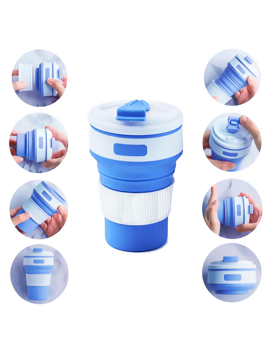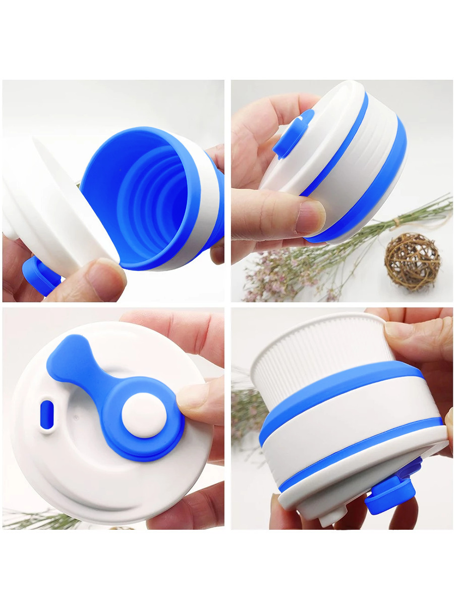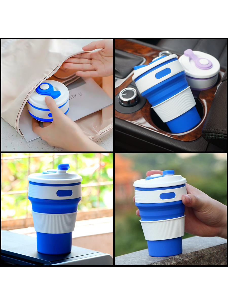 Силиконовый стакан для напитков объемом 350 мл. С крышкой. Размер стакана 8,5 х 13 см, размер в сложенном виде 8,5 х 6 см. Отлично помещается в кармане, кошельке, рюкзаке, чемодане и не занимает много места. Здорово подойдет для походов на открытом воздух