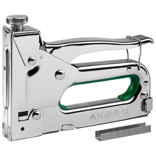 Особенностиблокировка спускового механизма, резиновая рукоять, индикатор замены скоб