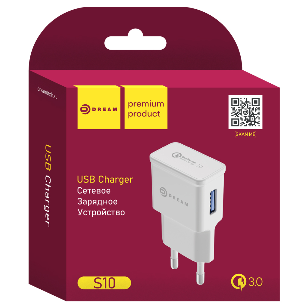Технология QC 3.0 выполняет зарядку мобильных устройств в 4 раза быстрее.Зарядное устройство DREAM QC 3.0 предназначено для быстрой, качественной и безопасной зарядки устройства – смартфона, планшета, плеера и пр. Оно имеет разъем USB, поэтому для того, ч